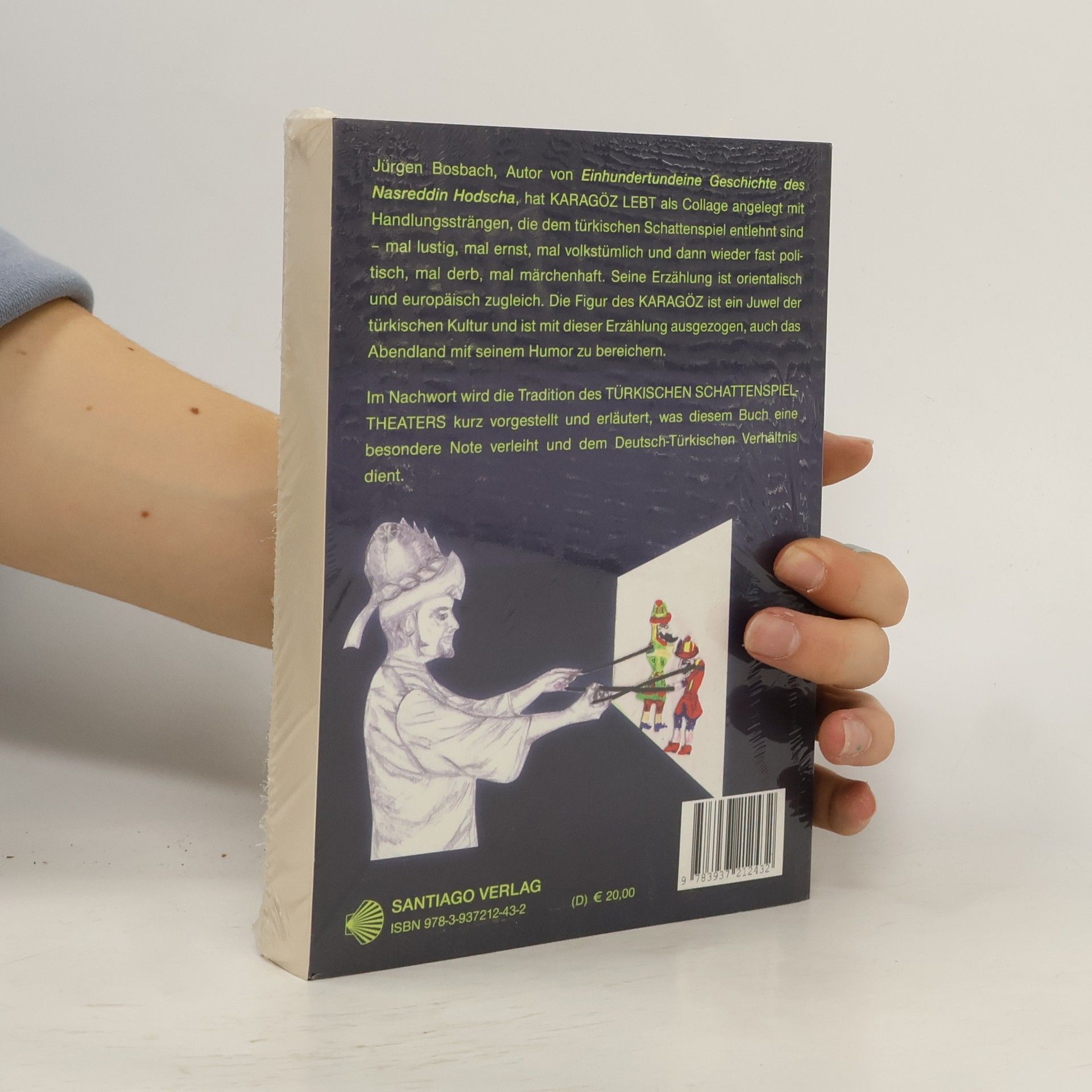 Mehr als einmal muss KARAGÖZ um sein Leben fürchten, denn Sultan Orhahn will ihn dazu zwingen, seine Schmiedekunst für seine Zwecke zu nutzen. Deshalb schickt er seinen Boten HACIVAT aus, um Karagöz zu finden. Zwischen diesen beiden entsteht eine Freundschaft und beide schöpfen aus ihrem unbändigen Humor die Kraft, auf den Plätzen der Dörfer und Städte des jungen osmanischen Reiches als Schauspieler erfolgreich zu bestehen. Als sie auf dem Höhepunkt ihrer Karriere den Sultan verulken, wird es für sie gefährlich und sie müssen fliehen. Im Versteck entwickeln sie, angeregt durch den Derwisch Scheich Kütscheri, das SCHATTENSPIEL, mit dem sie fortan weiter durchs Land ziehen, bis sie im Serail vor dem Sultan spielen müssen. Ihre Hinrichtung droht. Im Nachwort wird die Tradition des TÜRKISCHEN SCHATTENSPIELTHEATERS kurz vorgestellt und erläutert, was diesem Buch eine besondere Note verleiht und dem Deutsch-Türkischen Verhältnis dient.