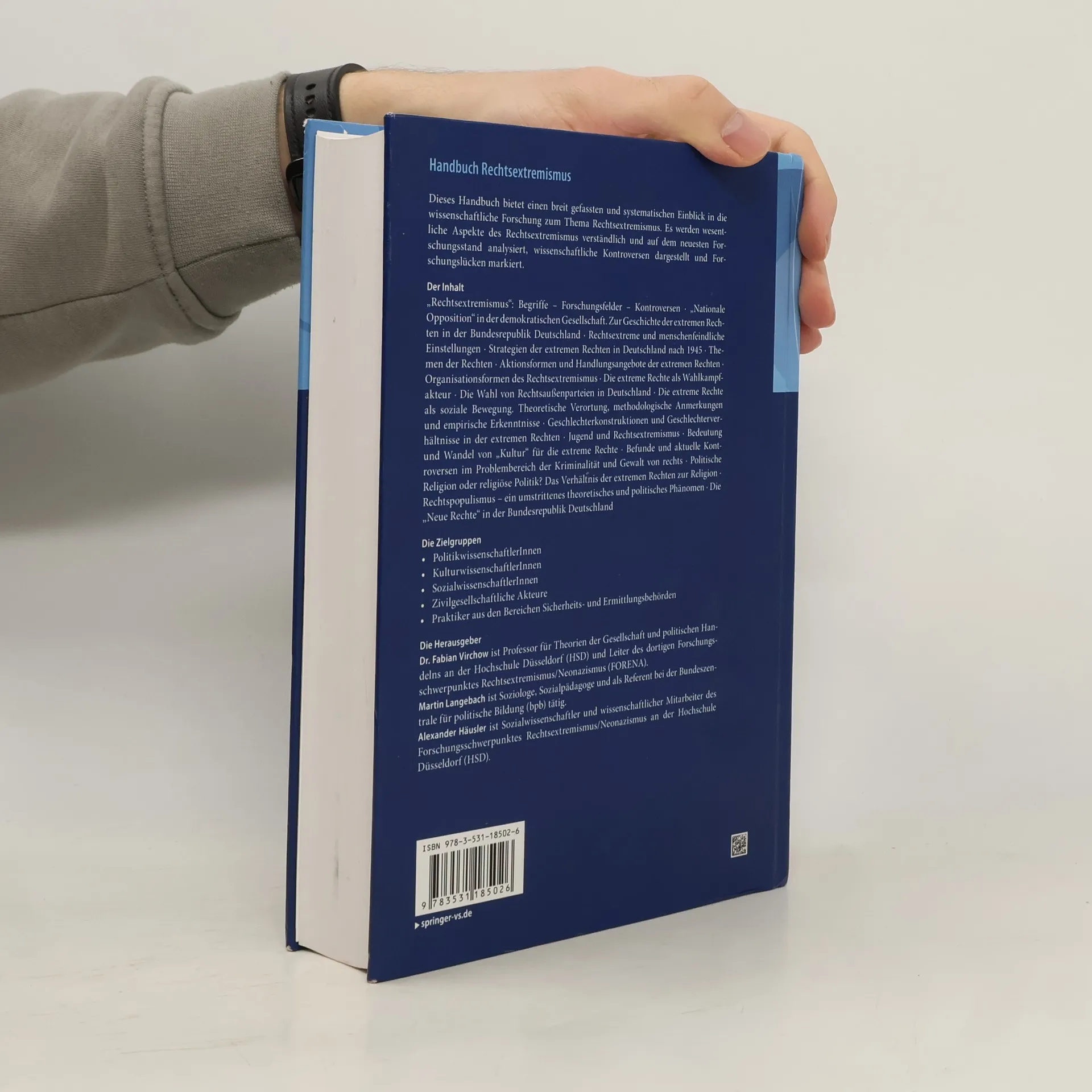 Dieses Handbuch bietet einen breit gefassten und systematischen Einblick in die wissenschaftliche Forschung zum Thema Rechtsextremismus. Es werden wesentliche Aspekte des Rechtsextremismus verständlich und auf dem neuesten Forschungsstand analysiert, wissenschaftliche Kontroversen dargestellt und Forschungslücken markiert.