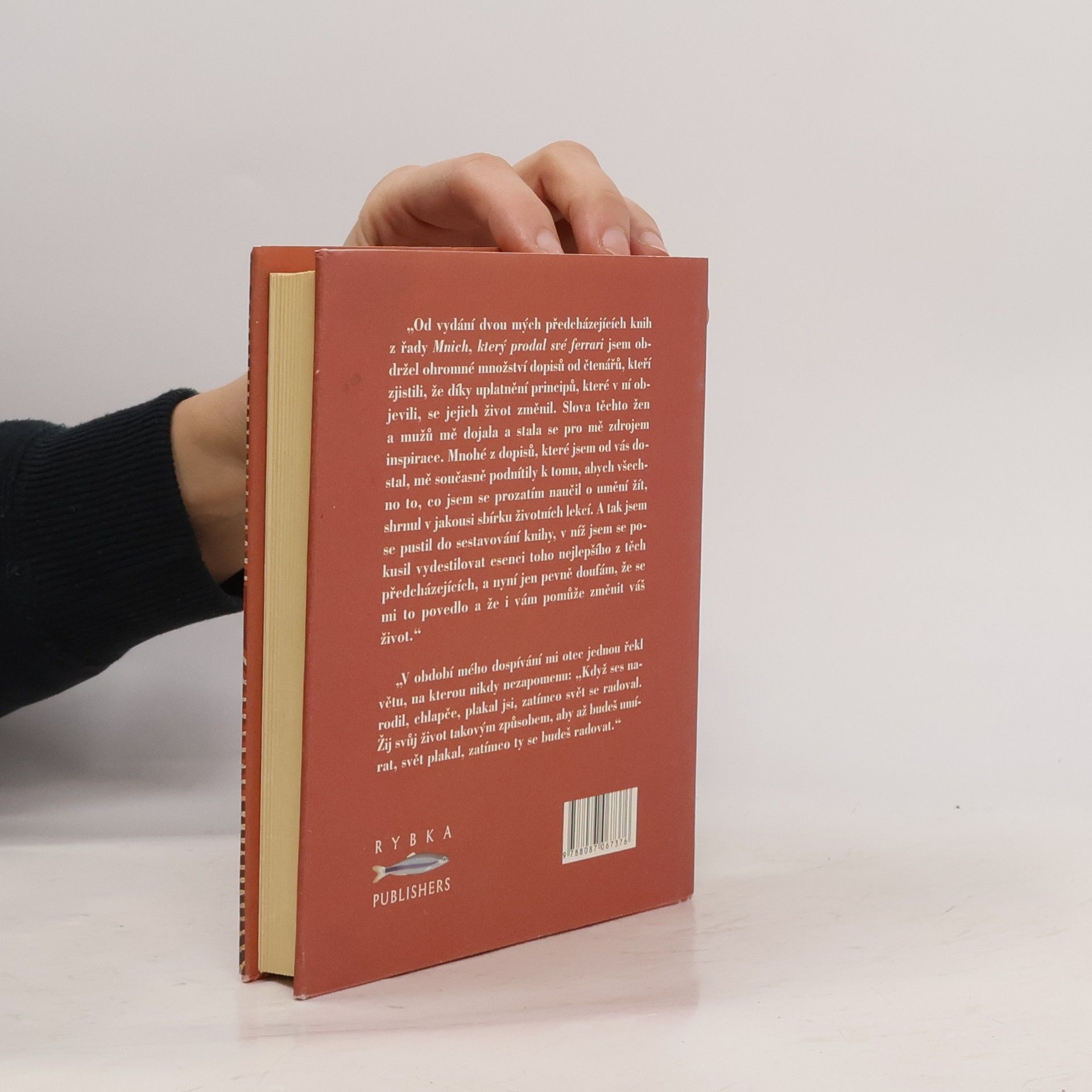 Žijete plným a smysluplým životem? Využíváte zcela svých možností, svého vnitřního potenciálu? Máte jasno v tom, co byste chtěli v životě dokázat? Umíte odpouštět? Žijete tak, abyste mohli umřít štastní? Co po sobě zanecháte, až se odeberete na věčnost? A komu budete chybět – kdo bude plakat, až tady nebudete? Robin Sharma, autor světového bestselleru Mnich, který prodal své ferrari, shrnul svou životní moudrost a filozofii, jakož i praktické postřehy a poznatky do stovky životních lekcí, v nichž ve zhuštěné podobě formuluje principy, které by si měl osvojit každý, kdo se rozhodl vzít život do vlastních rukou a učinit jej smysluplným. Záběr otázek a rad, které autor ve svém malém životním rádci předestírá, je široký – od zdánlivě prostých doporučení (Naučte se žádat o to, co chcete; Soustřed’te se na to podstatné; Prožijte den bez hodinek; Respektujte své instinkty; Vytvořte si osobní kodex chování; Naučte se mlčet) přes hluboké výzvy k zamyšlení (Objevte své poslání; Neodkládejte život na neurčito; Důležitá je cesta, nejen cíl; Žijte tak, abyste mohli umřít š astní) až po lekce zcela nevšední a originální