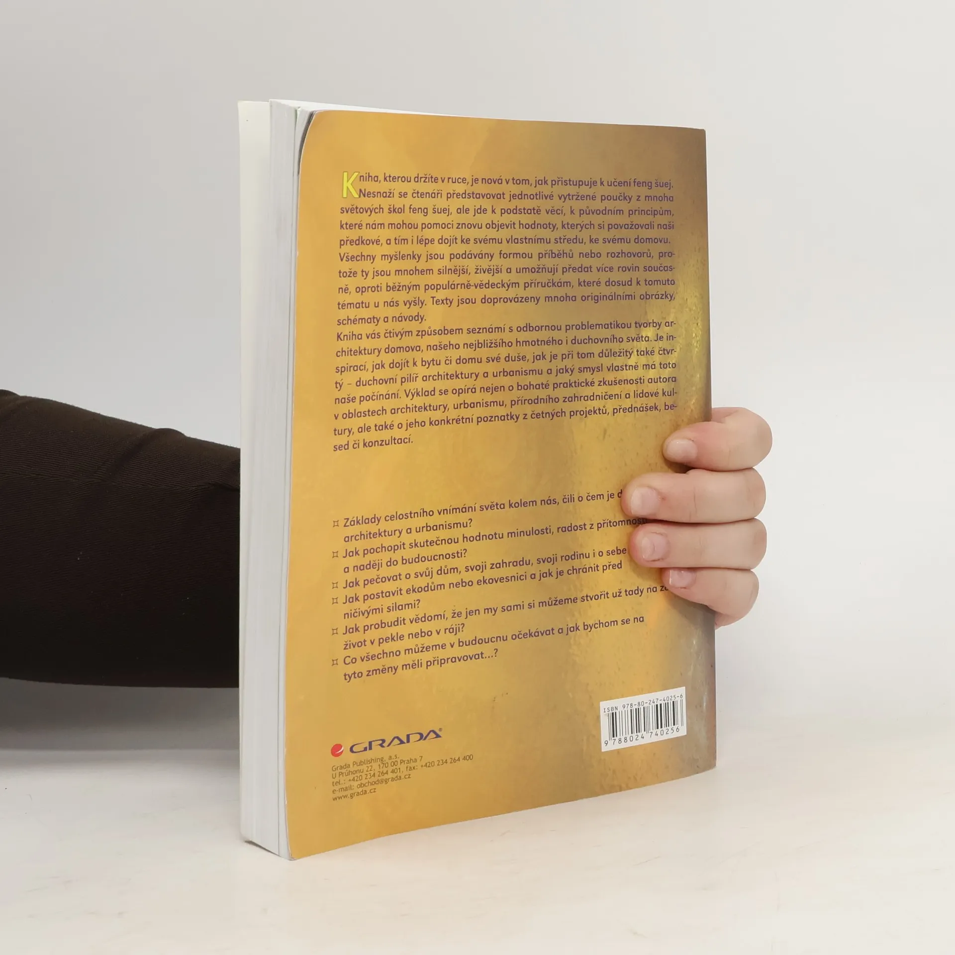 Kniha vás čtivým způsobem seznámí s odbornou problematikou tvorby architektury domova v inspiraci podle starobylého učení feng šuej. Autor, praktikující architekt, urbanista a geomant, zde shrnuje všechny zkušenosti, které během své třicetileté činnosti posbíral. Kniha je jakousi rukovětí pro čištění místa jako součásti našeho uzdravování, i návodem na to, jak přežít případné blížící se pohromy, přírodní i civilizační.