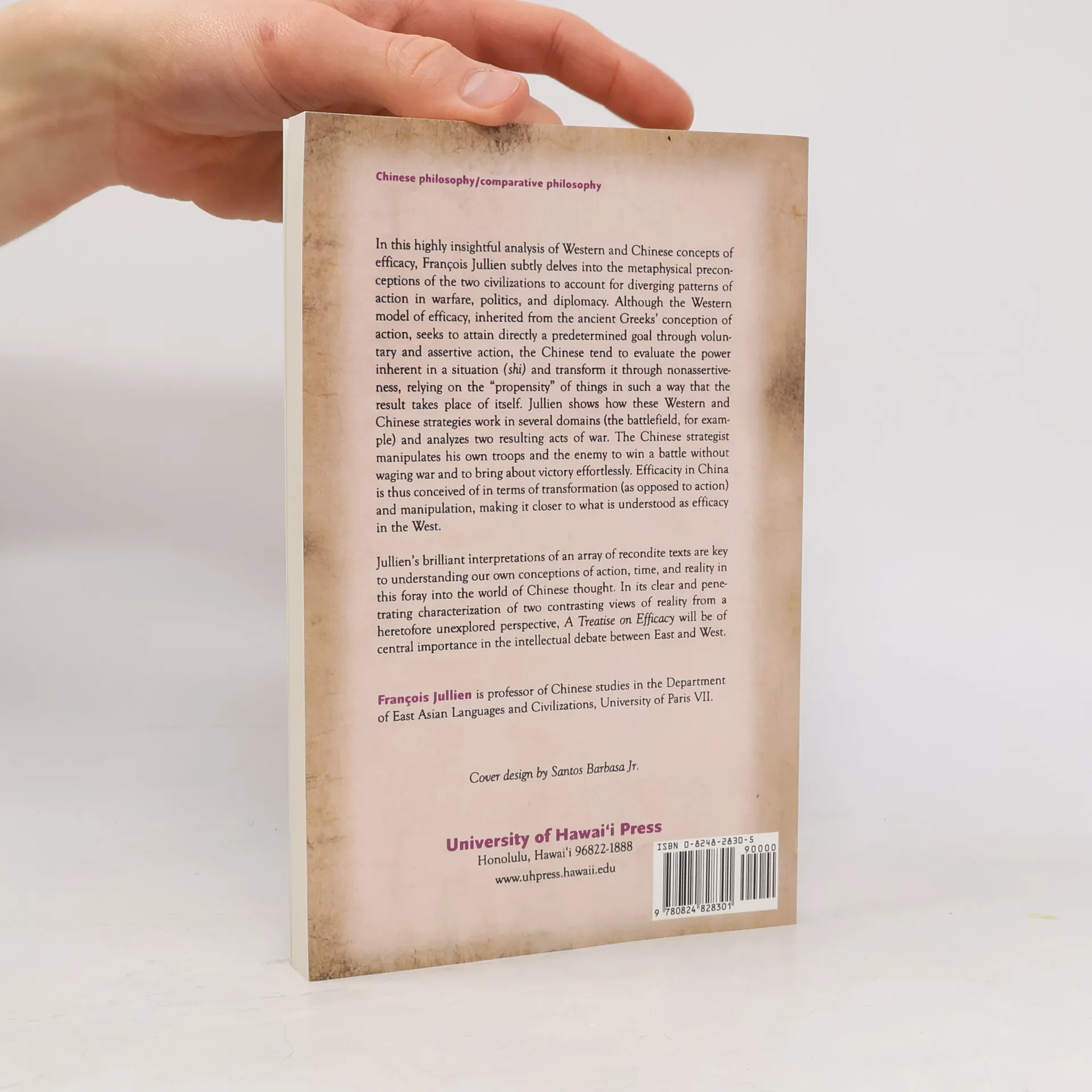 In this highly insightful analysis of Western and Chinese concepts of efficacy, Francois Jullien subtly delves into the metaphysical preconceptions of the two civilizations to account for diverging patterns of action in warfare, politics, and diplomacy. He shows how Western and Chinese strategies work in several domains (the battlefield, for example) and analyzes two resulting acts of war. The Chinese strategist manipulates his own troops and the enemy to win a battle without waging war and to bring about victory effortlessly. Efficacity in China is thus conceived of in terms of transformation (as opposed to action) and manipulation, making it closer to what is understood as efficacy in the West.Jullien's brilliant interpretations of an array of recondite texts are key to understanding our own conceptions of action, time, and reality in this foray into the world of Chinese thought. In its clear and penetrating characterization of two contrasting views of reality from a heretofore unexplored perspective, A Treatise on Efficacy will be of central importance in the intellectual debate between East and West.