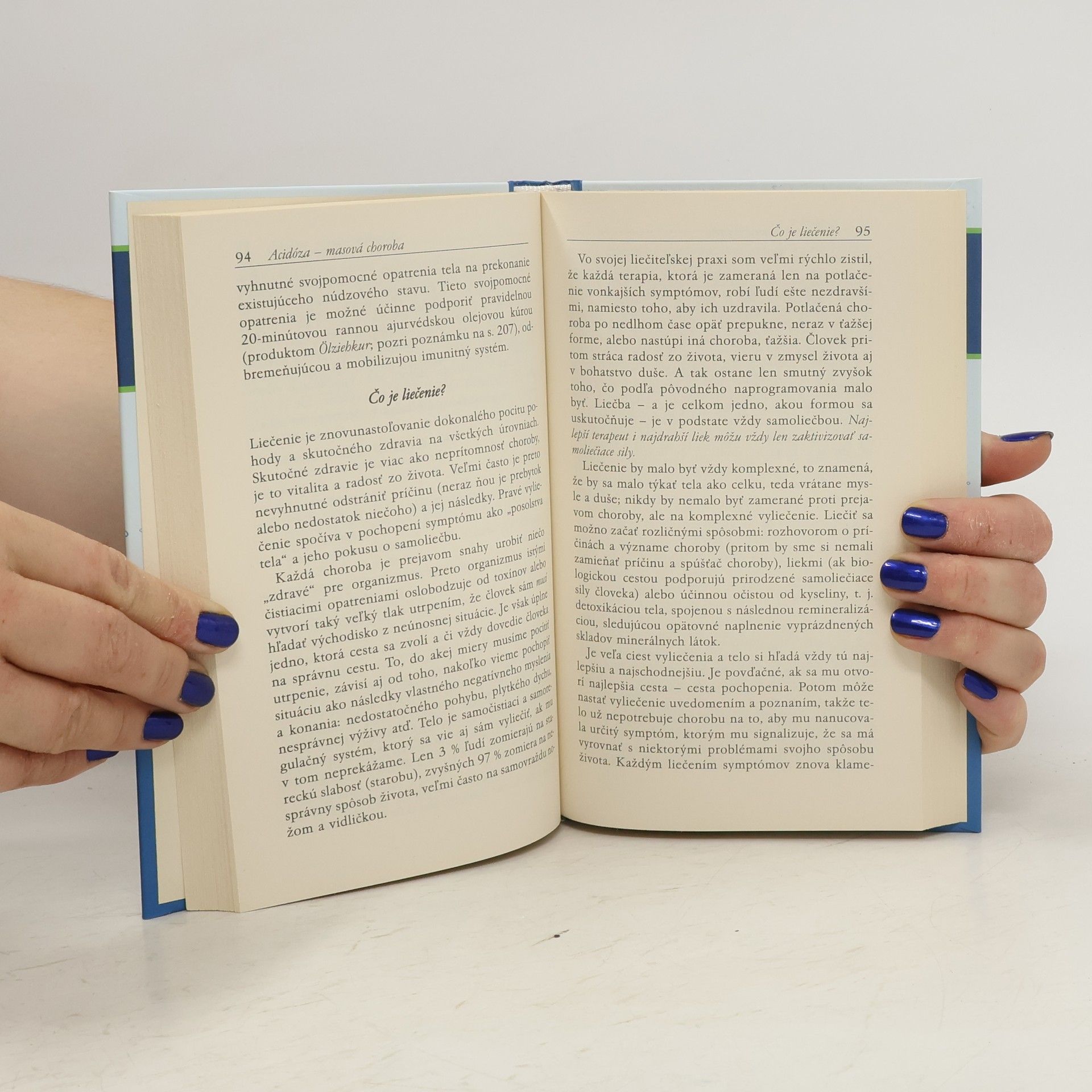 Naše telo je prispôsobené tak, aby sme sa mohli dožiť až 130 rokov. Ale v dôsledku nášho životného štýlu trpíme chorobami a predčasne stárneme a zomierame. Vnútorné prostredie nášho organizmu by malo mať mierne zásaditý charakter. Nesprávne návyky v stravovaní však vedú k tomu, že sa podiel zásaditosti v našom tele neustále znižuje. Prekyslenie organizmu je potom dôvodom väčšiny chorôb. Autor, známy nemecký terapeur a liečiteľ vo svojej knihe vysvetľuje, prečo je prekyslenie tela tak nebezpečné a čo urobiť pre to, aby sme znovu obnovili rovnováhu medzi kyslými a zásaditými látkami v tele.