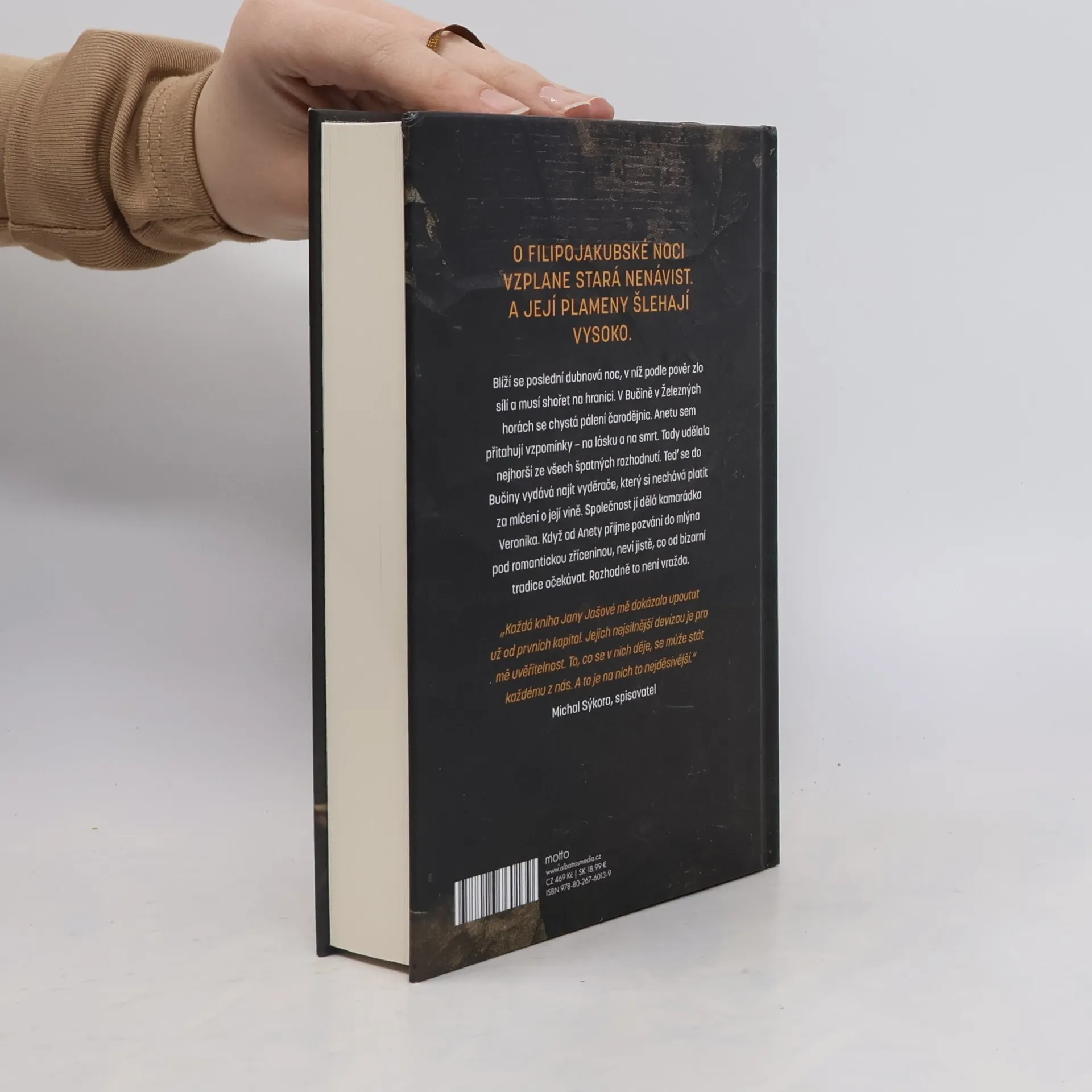 Blíží se poslední dubnová noc, v níž podle pověr zlo sílí a musí shořet na hranici. V Bučině v Železných horách se chystá pálení čarodějnic. Anetu sem přitahují vzpomínky – na lásku a na smrt. Tady udělala nejhorší ze všech špatných rozhodnutí. Teď se sem vydává najít vyděrače, který si nechává platit za mlčení o její vině. Společnost jí dělá kamarádka Veronika. Když se od Anety nechá pozvat na chalupu pod romantickou zříceninou, neví jistě, co od bizarní tradice očekávat. Rozhodně to není vražda. O Filipojakubské noci v Bučině kromě hranice na kopci vzplane i stará nenávist. A její plameny šlehají vysoko.