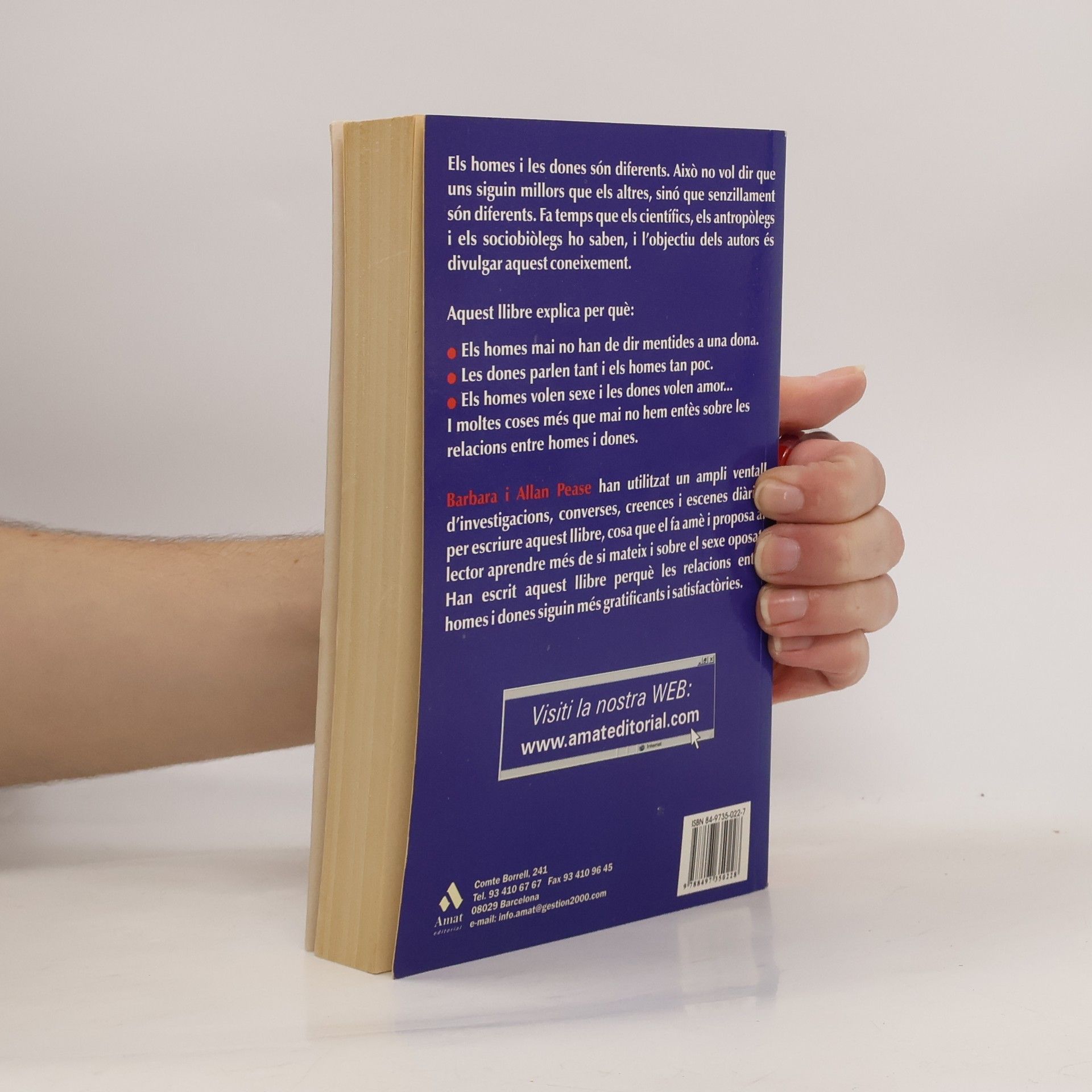 Els homes i les dones son diferents. Aixo no vol dir que uns siguin millors que els altres, sino que senzillament son diferents. Fa temps que els clentifics, els antropolegs l els sociobiolegs ho saben, i l'objectlu dels autors es divulgar aquest coneixement. Aquest llibre explica per que, els homes mal no han de dir mentides a una dona; les dones parlen tant l el homes tan poc; els homes volen sexe i les dones volen amor; i moltes coses mes que mal no hem entes sobre les relacions entre homes l dones.