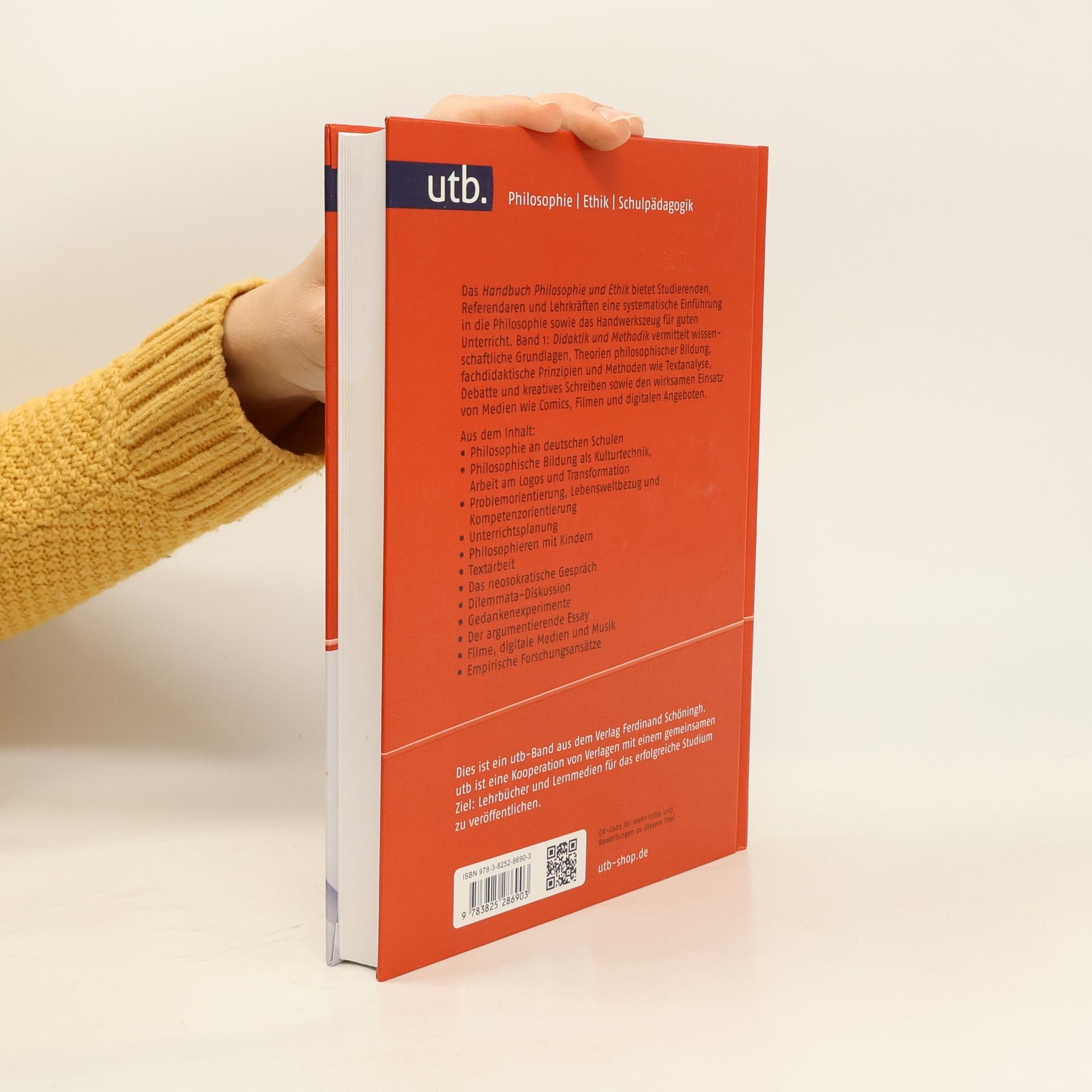 Das Handbuch Philosophie und Ethik bietet Studierenden, Referendaren und Lehrkräften eine systematische Einführung in die Philosophie sowie das Handwerkszeug für guten Unterricht. Band 1: Didaktik und Methodik vermittelt wissenschaftliche Grundlagen, Theorien philosophischer Bildung, fachdidaktische Prinzipien und Methoden wie Textanalyse, Debatte und kreatives Schreiben sowie den wirksamen Einsatz von Medien wie Comics, Filmen und digitalen Angeboten. Aus dem Inhalt: - Philosophie an deutschen Schulen - Philosophische Bildung als Kulturtechnik, Arbeit am Logos und Transformation - Problemorientierung, Lebensweltbezug und Kompetenzorientierung - Unterrichtsplanung - Philosophieren mit Kindern - Textarbeit - Das neosokratische Gespräch - Dilemmata-Diskussion - Gedankenexperimente - Der argumentierende Essay - Filme, digitale Medien und Musik - Empirische Forschungsansätze