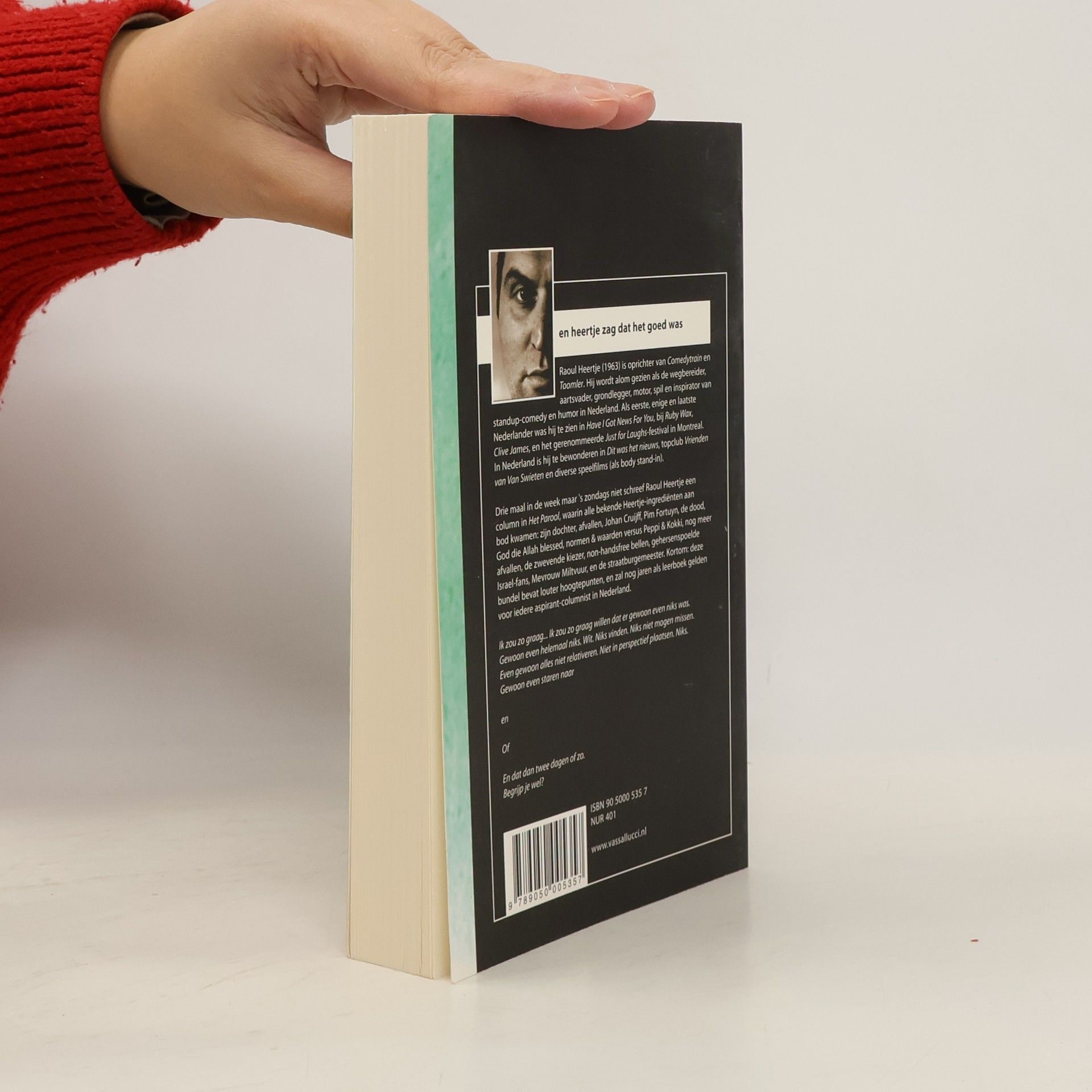 Raoul Heertje (1963) is oprichter van Comedytrain en Toomler. Hij wordt alom gezien als de wegbereider, aartsvader, grondlegger, motor, spil en inspirator van standup-comedy en humor in Nederland. Als eerste, enige en laatste Nederlander was hij te zien in Have I Got News For You, bij Ruby Wax, Clive James, en het gerenommeerde Just for Laughs-festival in Montreal. In Nederland is hij te bewonderen in Dit was het nieuws, topclub,Vrienden van Van Swieten en diverse speelfilms (als body stand-in). Drie maal in de week maar 's zondags niet schreef Raoul Heertje een column in Het Parool, waarin alle bekende Heertje-ingrediënten aan bod kwamen: zijn dochter, afvallen, Johan Cruijff, Pim Fortuyn, de dood, God die Allah blessed, normen & waarden versus Peppi & Kokki, nog meer afvallen, de zwevende kiezer, non-handsfree bellen, gehersenspoelde Israel-fans, Mevrouw Miltvuur, en de straatburgemeester. Kortom: deze bundel bevat louter hoogtepunten, en zal nog jaren als leerboek gelden voor iedere aspirant-columnist in Nederland.