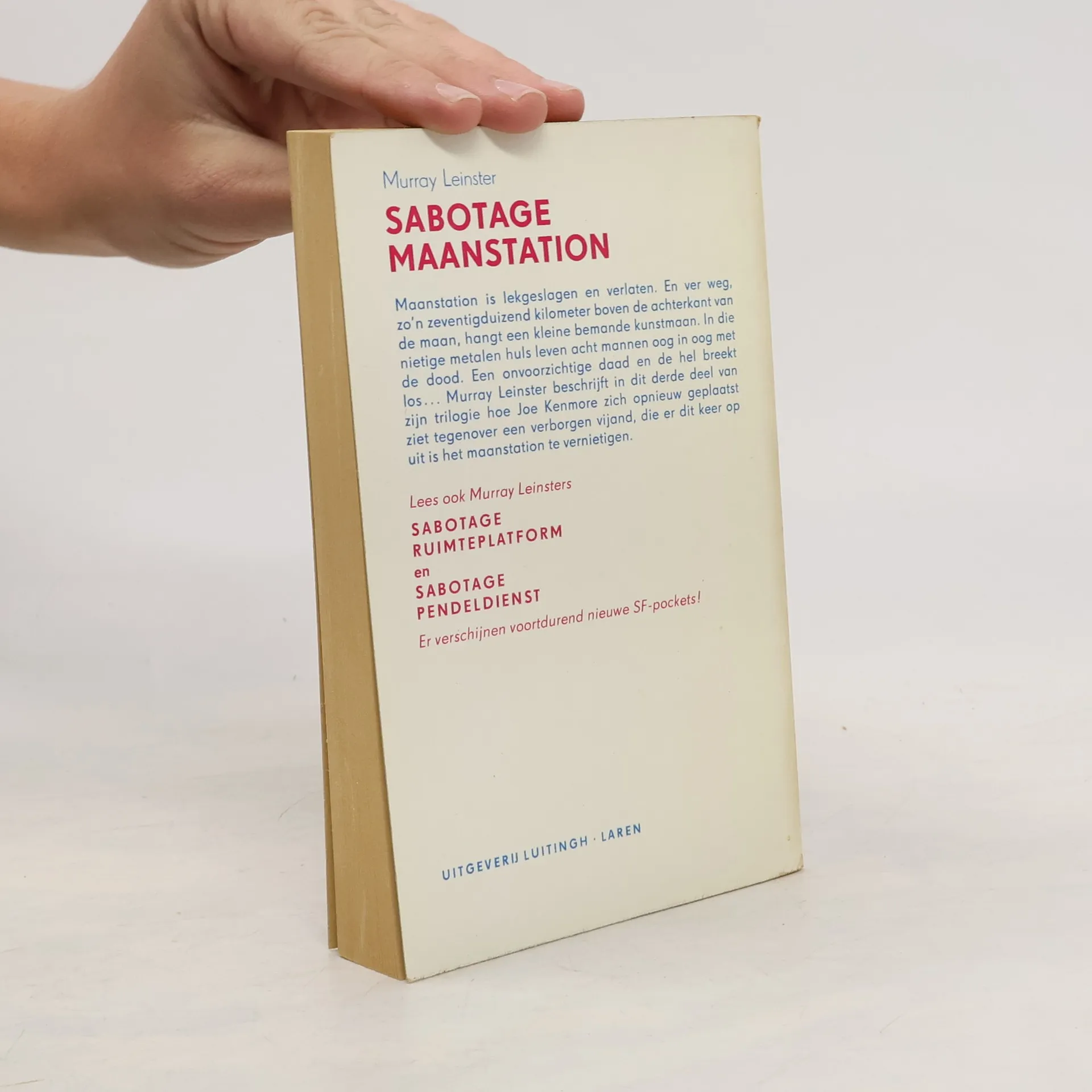 Maanstation is lekgeslagen en verlaten. En ver weg, zo'n zeventigduizend kilometer boven de achterkant van de maan, hangt een kleine bemande kunstmaan. In die nietige metalen huls leven acht mannen oog in oog met de dood. Een onvoorzichtige daad en de hel breekt los... Murray Leinster beschrijft in dit derde deel van zijn trilogie hoe Joe Kenmore zich opnieuw geplaatst ziet tegenover een verborgen vijand, die er dit keer op uit is het maanstation te vernietigen.