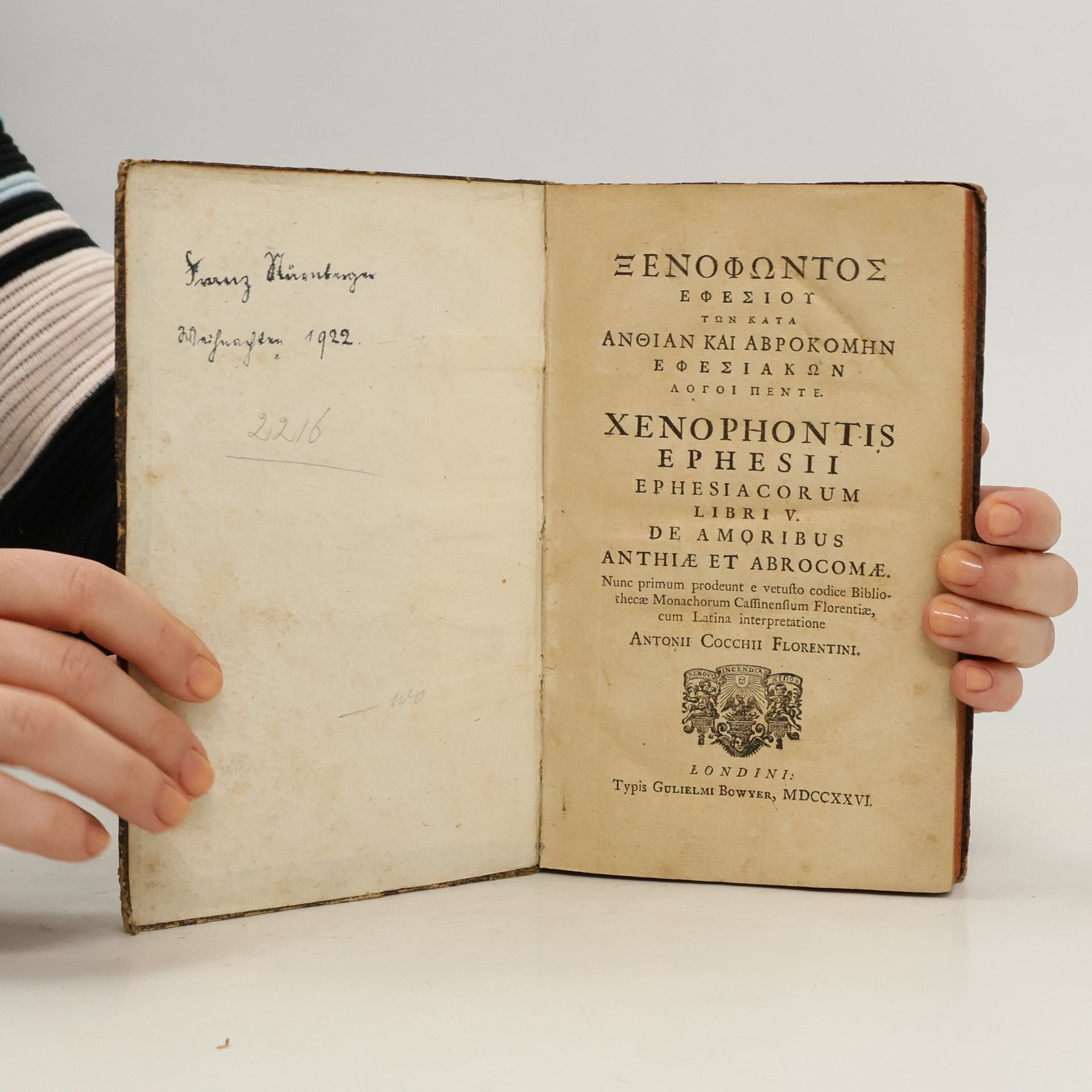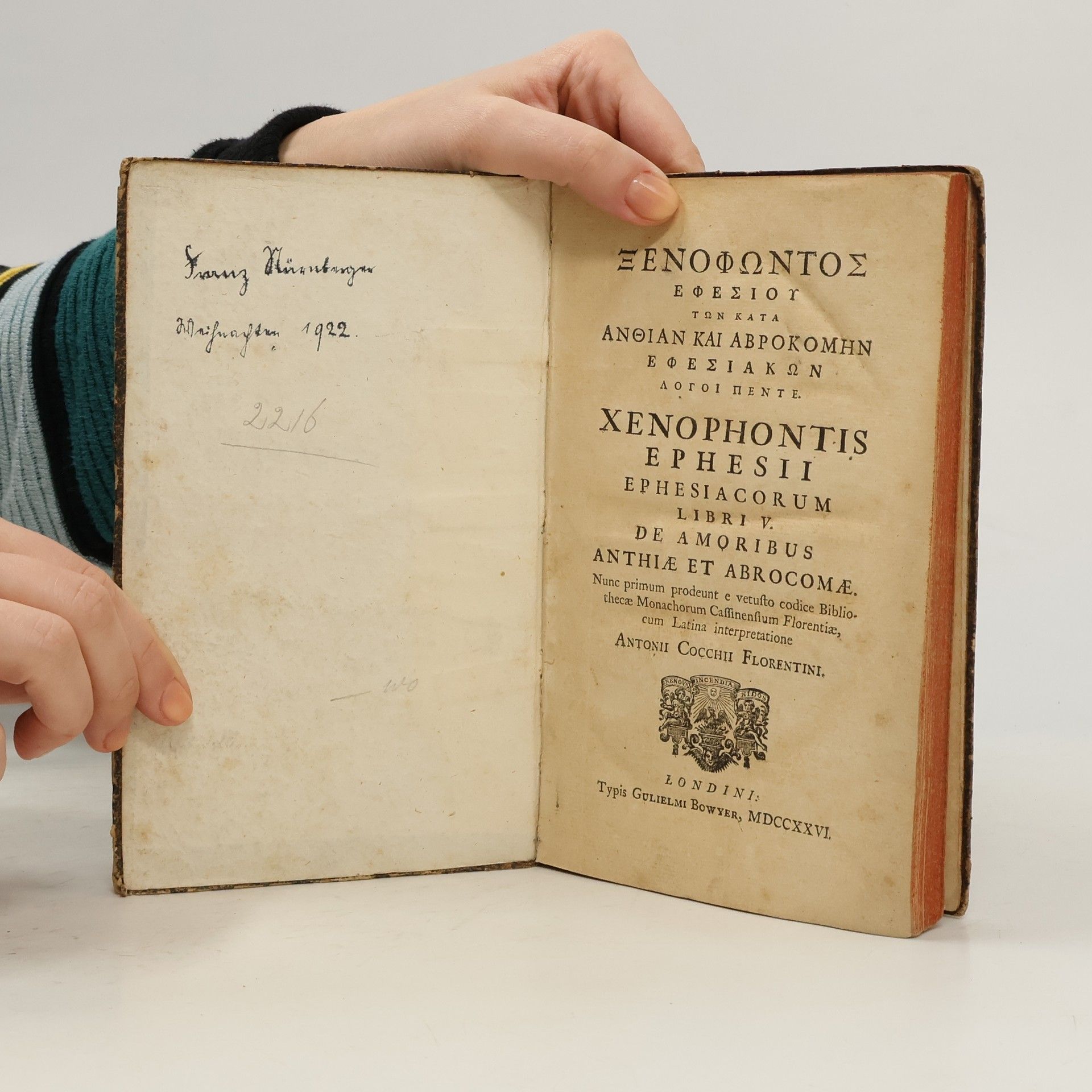 Ξενοφωντος εφεσιου των κατά Ανθίαν και Αβροκόμην Εφεσιακών λόγοι πέντε. Xenophontis Ephesii Ephesiacorum V, Xenophon