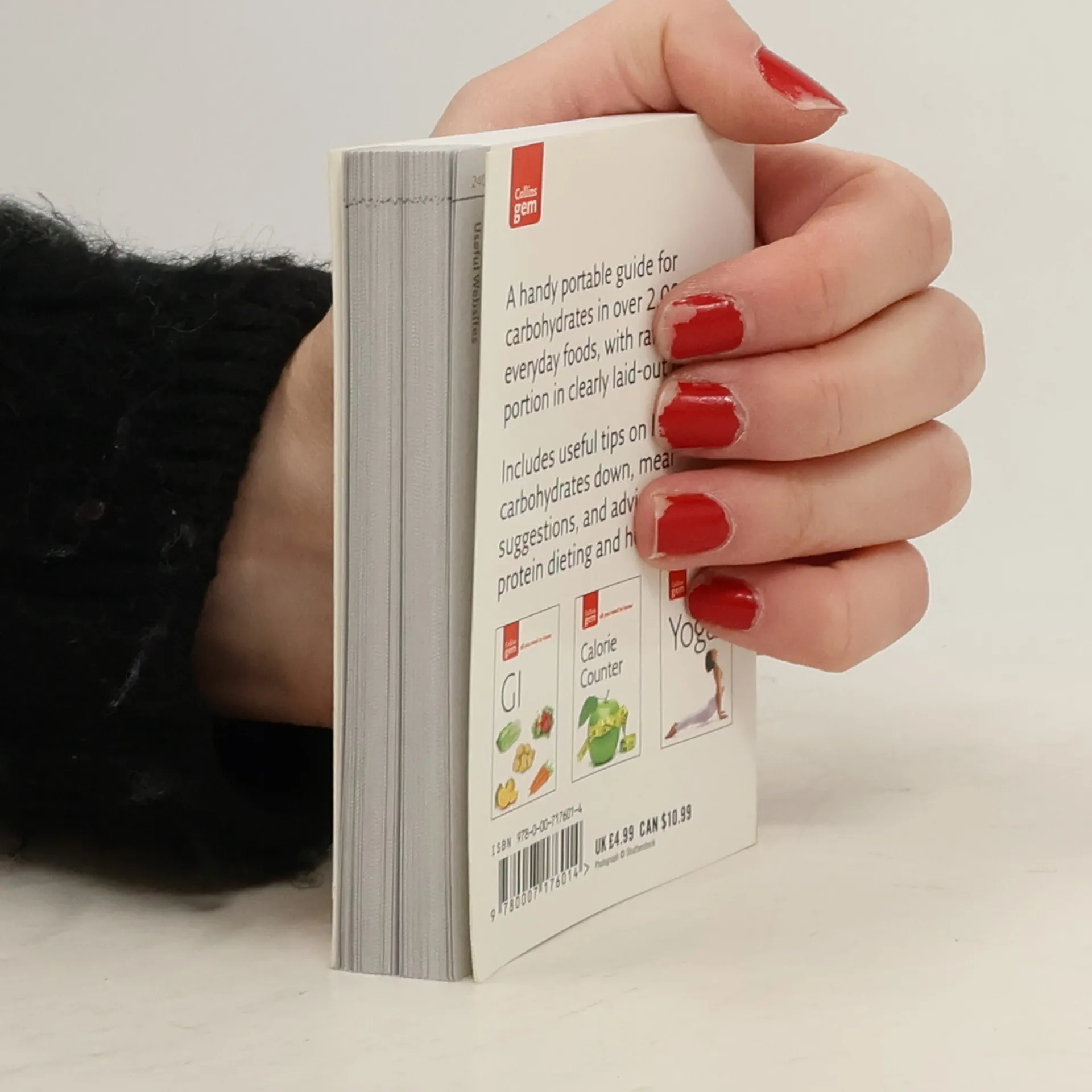 The ideal companion to the hugely successful Gem Calorie Counter, this is a handy portable guide to carbohydates in everyday foods.Perfect for those following the Fast Diet (5:2 Diet), Dukan Diet, Atkins Diet or other weight-loss diets.Clearly laid out tables give details of net carbohydrates per portion (slice, biscuit, apple) making it quick and simple to use.Reducing carbohydrates and following a high protein diet has become a popular and effective way of losing weight and keeping those extra pounds off. The interest in the Dr Atkins New Diet Revolution is clear proof of this.The key to following a high-protein diet is to control your carbohydrate intake. Collins Gem Carb Counter is a guide to the net carb contents of everyday foods. It also gives calories, protein and fat.Information is given per portion to make it easy to use. High protein, carb-counting diets are often referred to as a man’s diet and this emphasis on portions rather than 100 g means that there is less working out involved.Boredom is often the downfall of the carb counter, so a section is included which gives suggestions for different meals: breakfast, lunch, dinner and snacks.