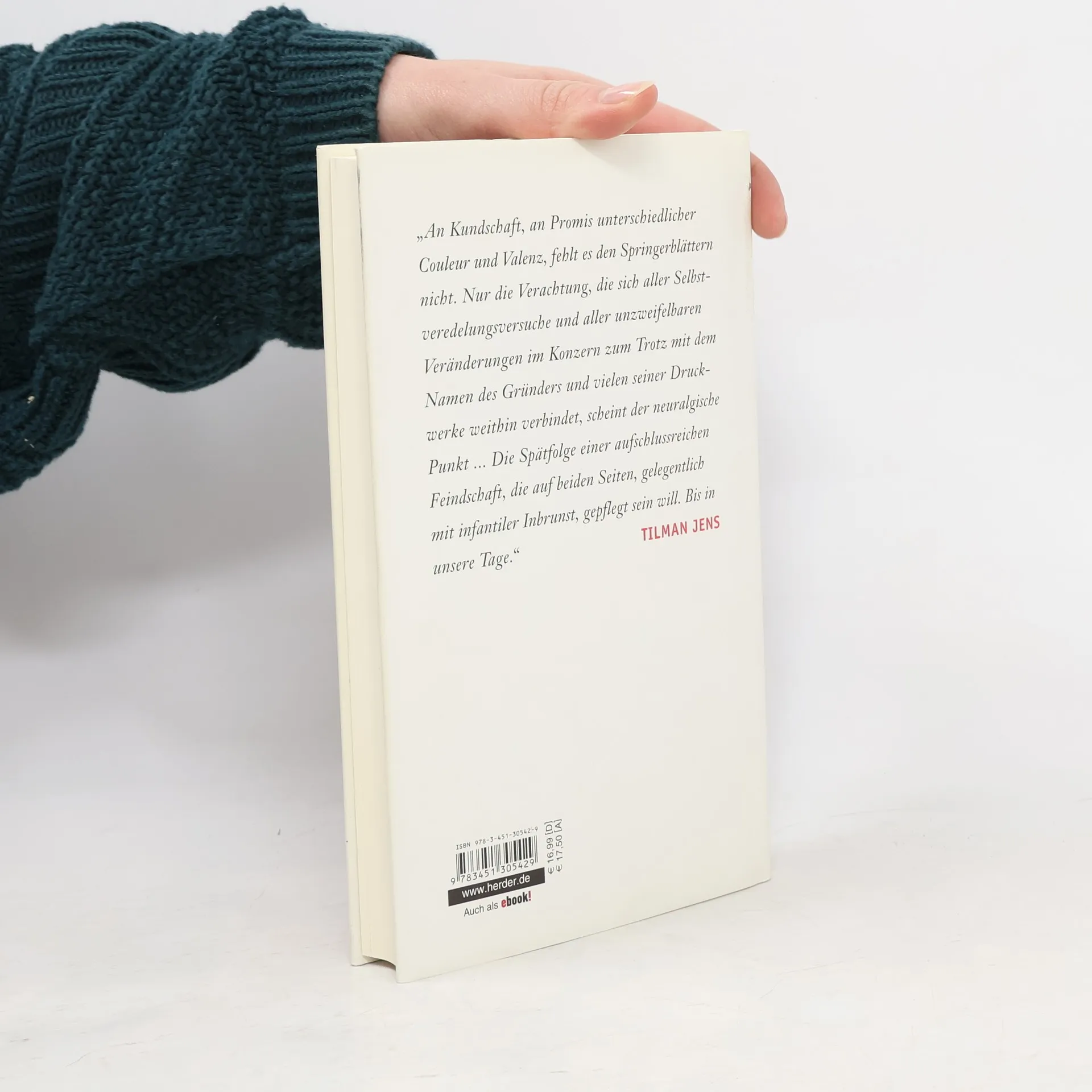 'Enteignet Springer' war eine der zentralen Forderungen der 68er-Bewegung. Die Abneigung gegen Springer und die Springer-Presse eint 68er wie politische Linke bis heute, die alten Reflexe funktionieren noch immer. In der DDR war Springer einer der meistgehassten Protagonisten des Westens. Auf Springer-Seite wird hingegen gerne jede Kritik an Axel Cäsar Springer ausgeblendet. Entweder Verdammung oder Heiligsprechung. Tilman Jens porträtiert einen großen, aber auch zutiefst zerrissenen Menschen. Vor allem aber interessiert Jens, welche Rolle das Feindbild Springer für die politische Identitätsbildung der 68er wie ihrer Gegner spielte. Ein Lehrstück darüber, wie Helden und Bösewichte gemacht werden, und über die deutsche Unfähigkeit, die Ambivalenz großer Persönlichkeiten zu akzeptieren.