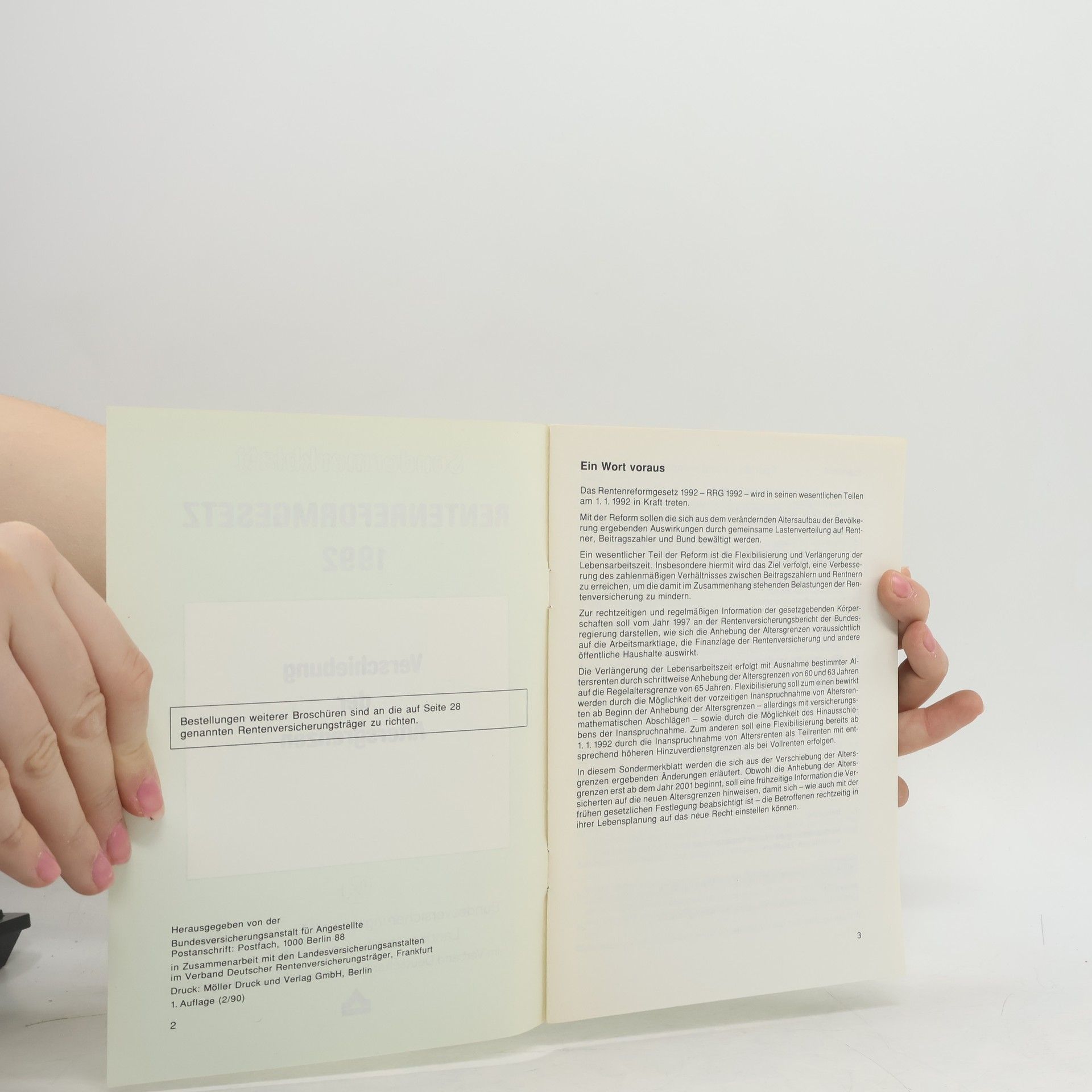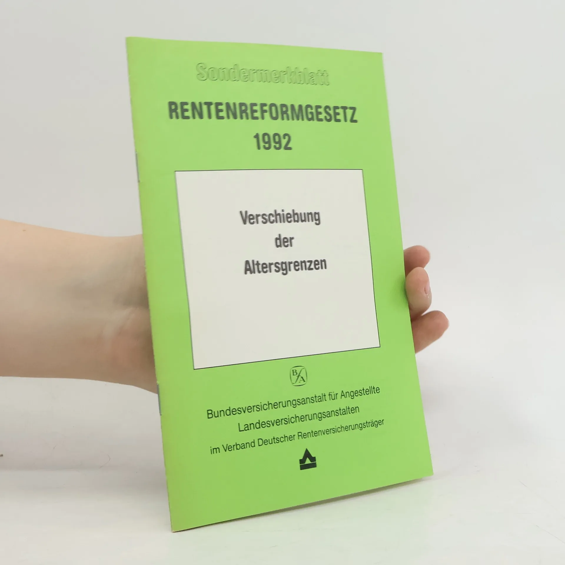 Sondermerkblatt Rentenreformgesetz 1992. Verschiebung der Altersgrenzen, Kolektív autorov
