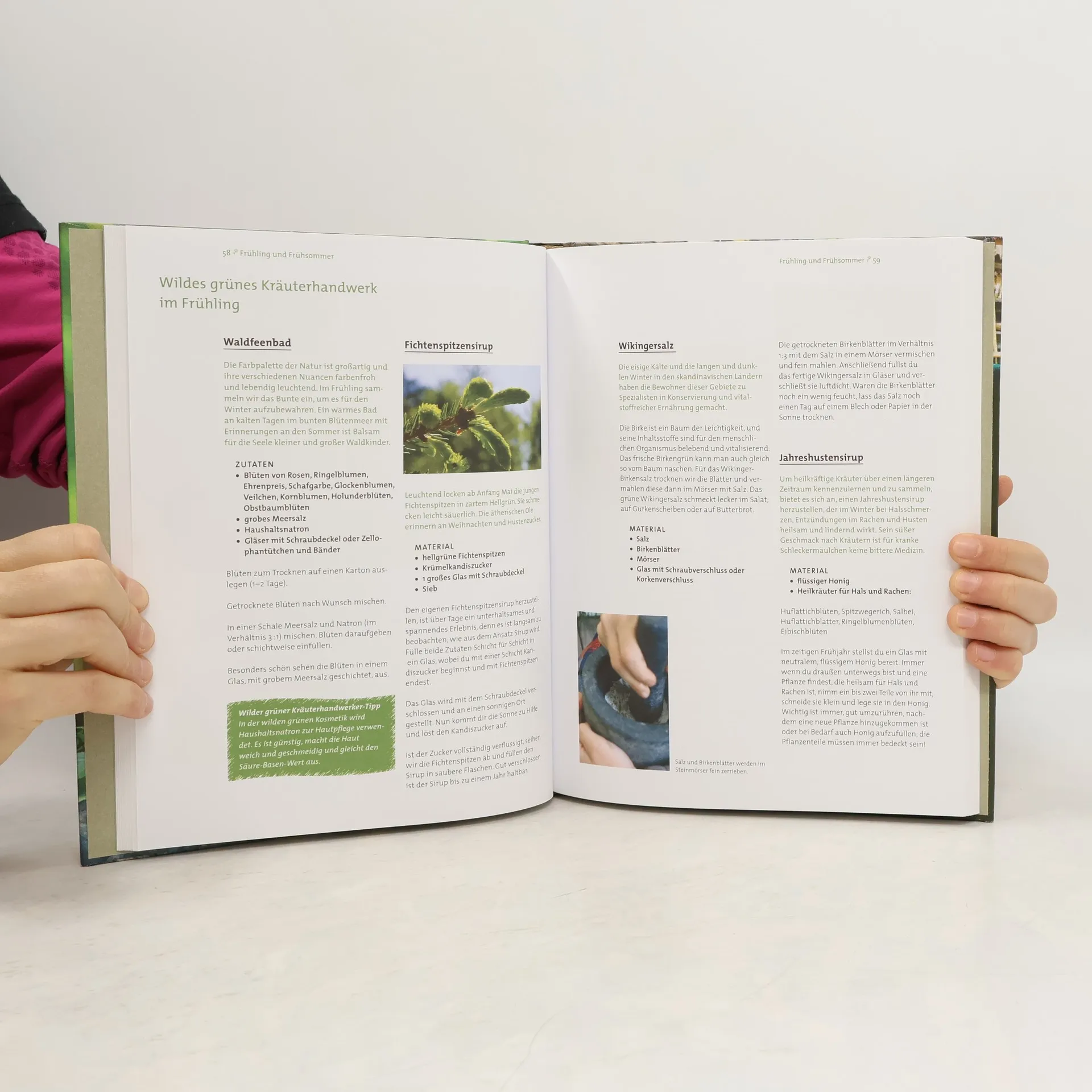 Im Frühling aus den ersten blühenden Kräutern einen Sirup ansetzen und aus jungem Holz eine Pfeife schnitzen. Ein Feuer nach alter Art entzünden und gemeinsam eine Suppe kochen. Naturseife sieden und mit Schafwolle filzen. Primitive Werkzeuge wie ein Steinmesser oder einen Bogen anfertigen. Für den grünen Medizinschrank am offenen Feuer einen Waldbalsam kochen. Schokobananen aus der Glut und Geschichten am Lagerfeuer runden den Tag ab. Eine Fülle an praktischen Anleitungen zeigt, wie man mit Kindern im Kreislauf der Jahreszeiten die Natur hautnah und sinnreich erleben kann. Aus Naturmaterialien entstehen mit einfachen Mitteln schöne und nützliche Dinge. Naturerlebnis, Naturverbundenheit und die Erfahrung der natürlichen Lebensrhythmen stärkt, zentriert und trägt zur Entfaltung des kindlichen Potenzials bei. Ein idealer Weg, um die Sehnsucht nach Ursprünglichkeit auszuleben, aus elementaren Werten zu schöpfen und dem eigenen intuitiven Wesenskern Raum zu geben.