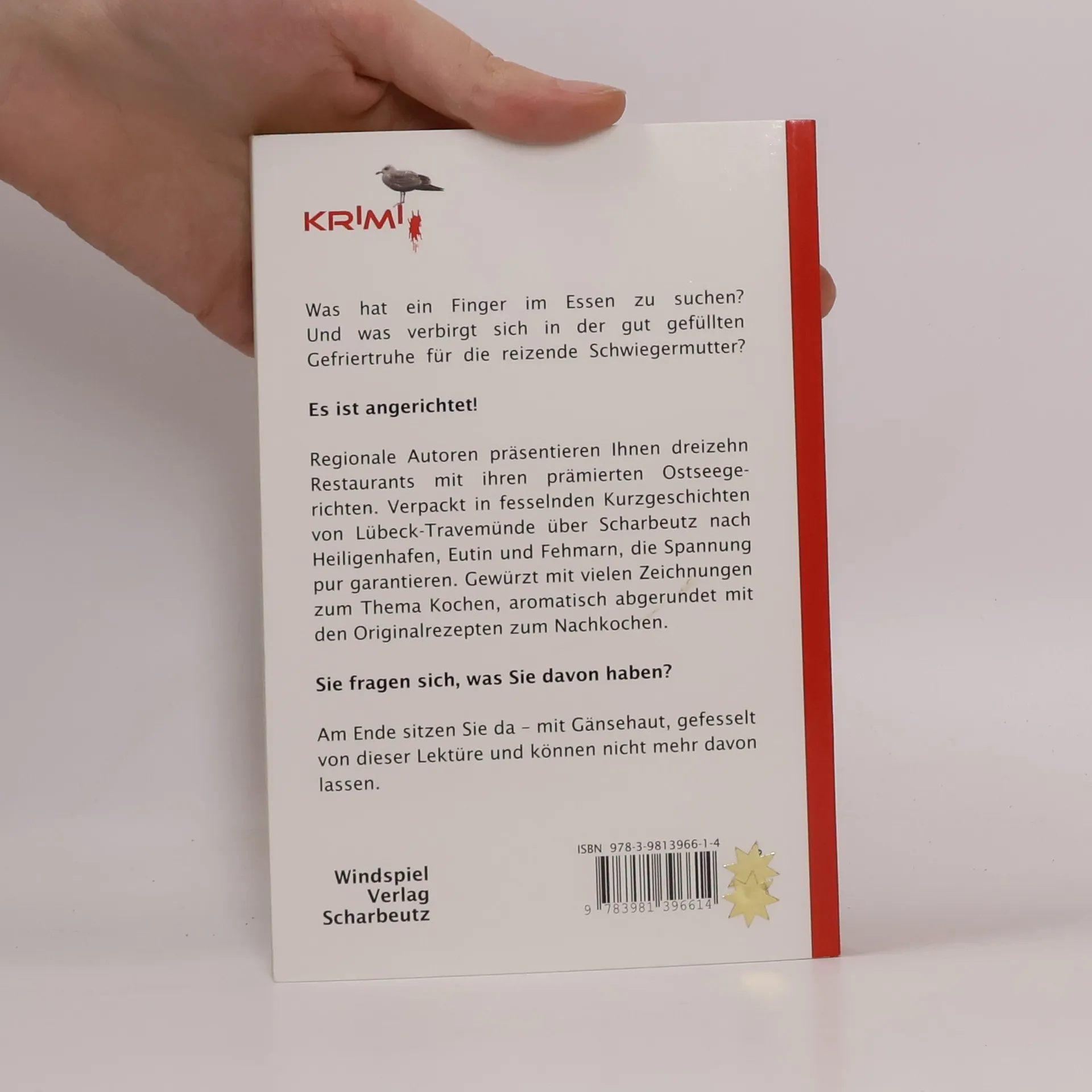 Regionale Autoren präsentieren Ihnen dreizehn Restaurants mit ihren prämmierten Ostseegerichten. Verpackt in fesselnden Kurzgeschichten von Lübeck-Travemünde über Scharbeutz nach Heiligenhafen, Eutin und Fehmarn, die Spannung pur garantieren. Gewürzt mit vielen Zeichnungen zum Thema Kochen, aromatisch abgerundet mit den Originalrepten zum Nachkochen.