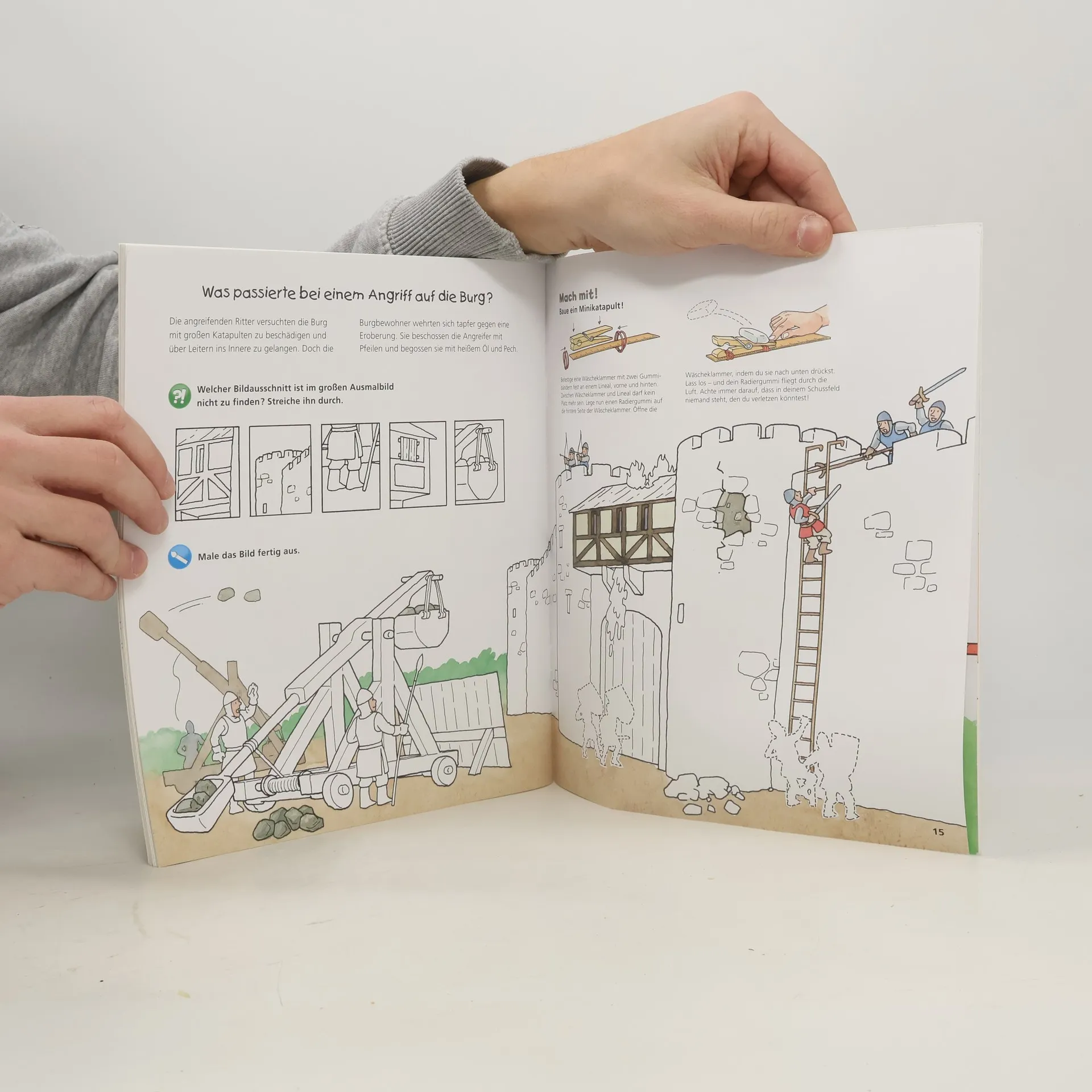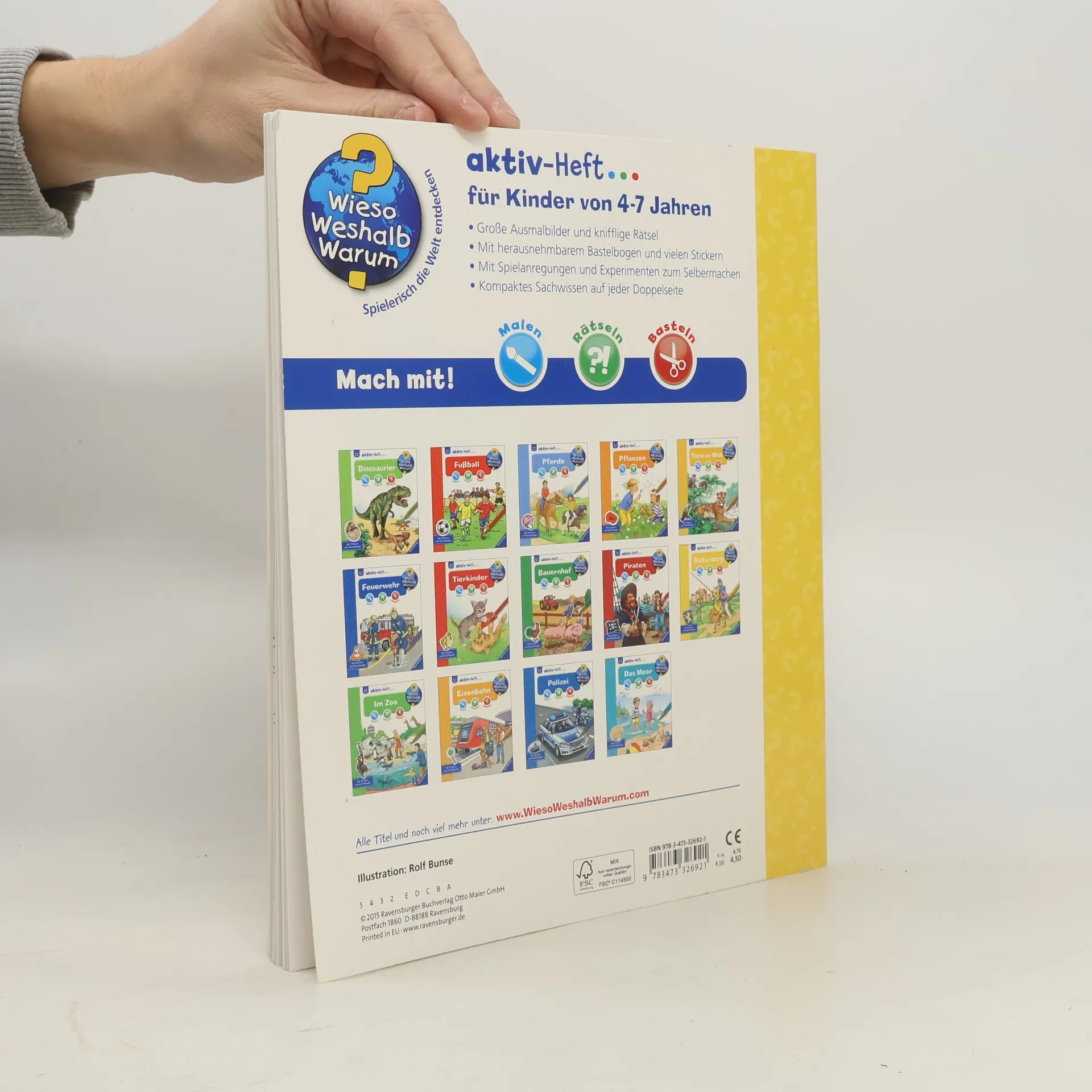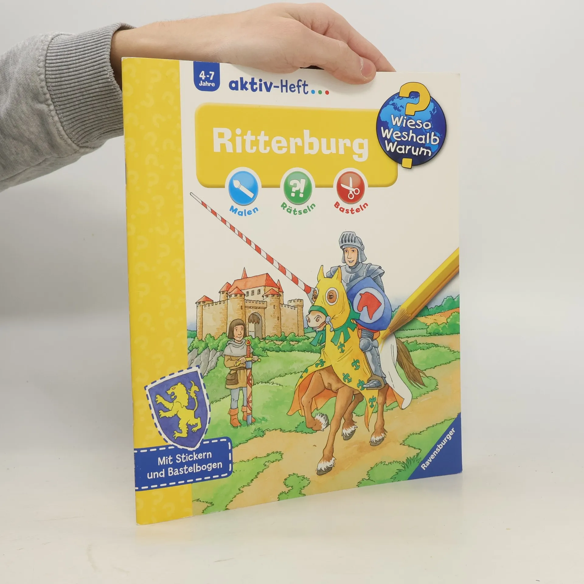 Wie wurde man Ritter? Was geschah bei einem Turnier? Große Ausmalbilder, knifflige Rätsel, einfallsreiche Bastelideen und Experimente laden Kinder zum aktiven Entdecken ein. Mit kurzen Wissenstexten, über 20 Stickern und einem Bastelbogen. Wieso? Weshalb? Warum? aktiv-Heft Malen, Rätseln und Basteln für Kinder von 4-7 Jahren Mit den Wieso Weshalb? Warum? aktiv-Heften erschließen Kinder sich ihre Lieblingsthemen selbstständig. Große Bilder laden zum Ausmalen ein. Kurze, kindergerechte Texte vermitteln Sachwissen, das durch abwechslungsreiche Rätsel auf spielerische Weise vertieft wird. Einfache Experimente und vielfältige Spielanregungen sorgen für viel Spaß. Darüber hinaus laden Bastelideen und Sticker Kinder dazu ein, selbst kreativ zu werden.