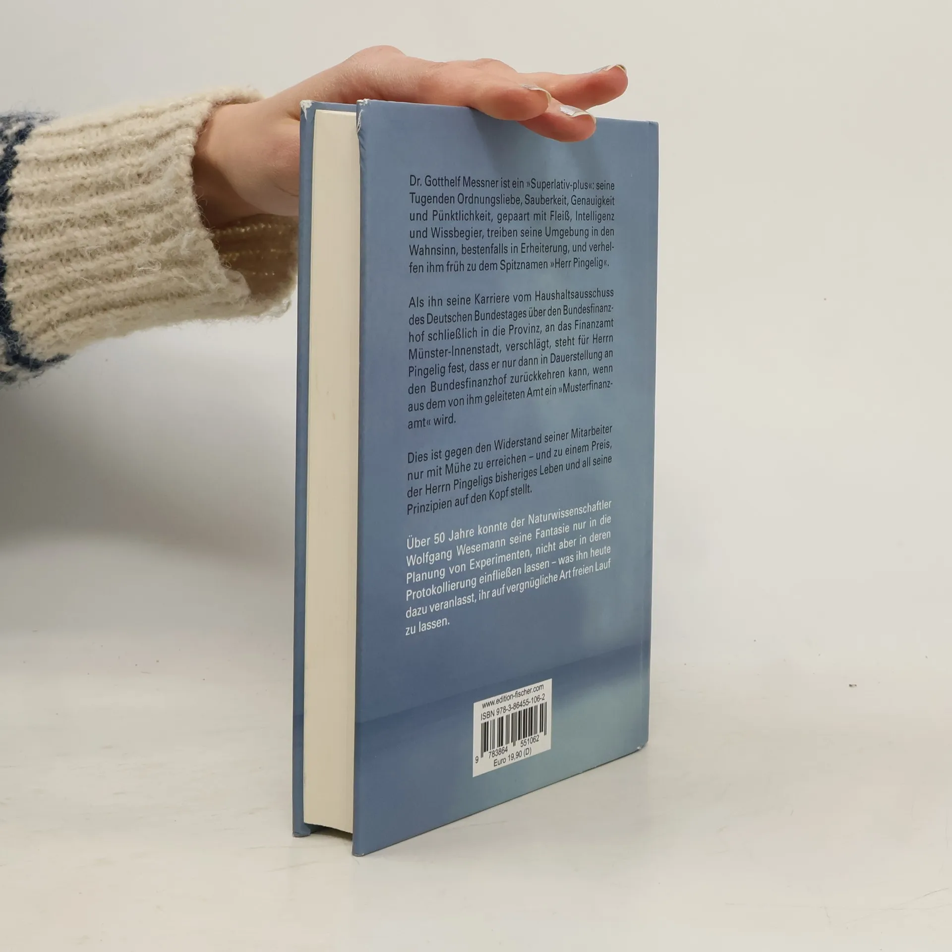 Dr. Gotthelf Messner ist ein »Superlativ-plus«: seine Tugenden Ordnungsliebe, Sauberkeit, Genauigkeit und Pünktlichkeit, gepaart mit Fleiß, Intelligenz und Wissbegier, treiben seine Umgebung in den Wahnsinn, bestenfalls in Erheiterung, und verhelfen ihm früh zu dem Spitznamen »Herr Pingelig«. Als ihn seine Karriere vom Haushaltsausschuss des Deutschen Bundestages über den Bundesfinanzhof schließlich in die Provinz, an das Finanzamt Münster-Innenstadt, verschlägt, steht für Herrn Pingelig fest, dass er nur dann in Dauerstellung an den Bundesfinanzhof zurückkehren kann, wenn aus dem von ihm geleiteten Amt ein »Musterfinanzamt« wird. Dies ist gegen den Widerstand seiner Mitarbeiter nur mit Mühe zu erreichen – und zu einem Preis, der Herrn Pingeligs bisheriges Leben und all seine Prinzipien auf den Kopf stellt. Über 50 Jahre konnte der Naturwissenschaftler Wolfgang Wesemann seine Fantasie nur in die Planung von Experimenten, nicht aber in deren Protokollierung einfließen lassen – was ihn heute dazu veranlasst, ihr auf vergnügliche Art freien Lauf zu lassen.