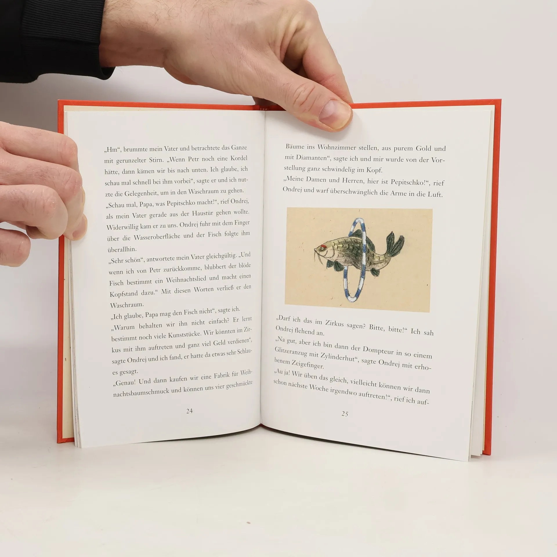 Ein Fisch muss auf den Tisch, beschließt Papa Pavel am Heiligabend und macht sich mit seinen Kindern Ondrej, Jiri und Adela auf, einen Karpfen für ein festliches Weihnaschtsessen zu besorgen. Als sie den Markt in der Prager Altstadt erreichen, gibt es aber nur noch einen einzigen Fisch zu kaufen. Und dieser sieht alles andere als gut aus: Er hat einen komischen roten Streifen auf dem Kopf und braungrüne Flossen. Trotzdem schließen Ondrej, Jiri und Adela ihn sofort ins Herz. Und ehe sich Papa Pavel versieht, landet der Karpfen in einem großen Holzzuber im Waschraum der Familie und hat einen Namen: Pepitschko. Während Pavel von einem Festessen träumt und Ondrej. Jiri und Adela von einer schillernden Zukunft als Karpfen-Dompteure, hütet Pepitschko ein Geheimnis, das der ganzen Familie ein unvergessliches Weihnachten beschert.