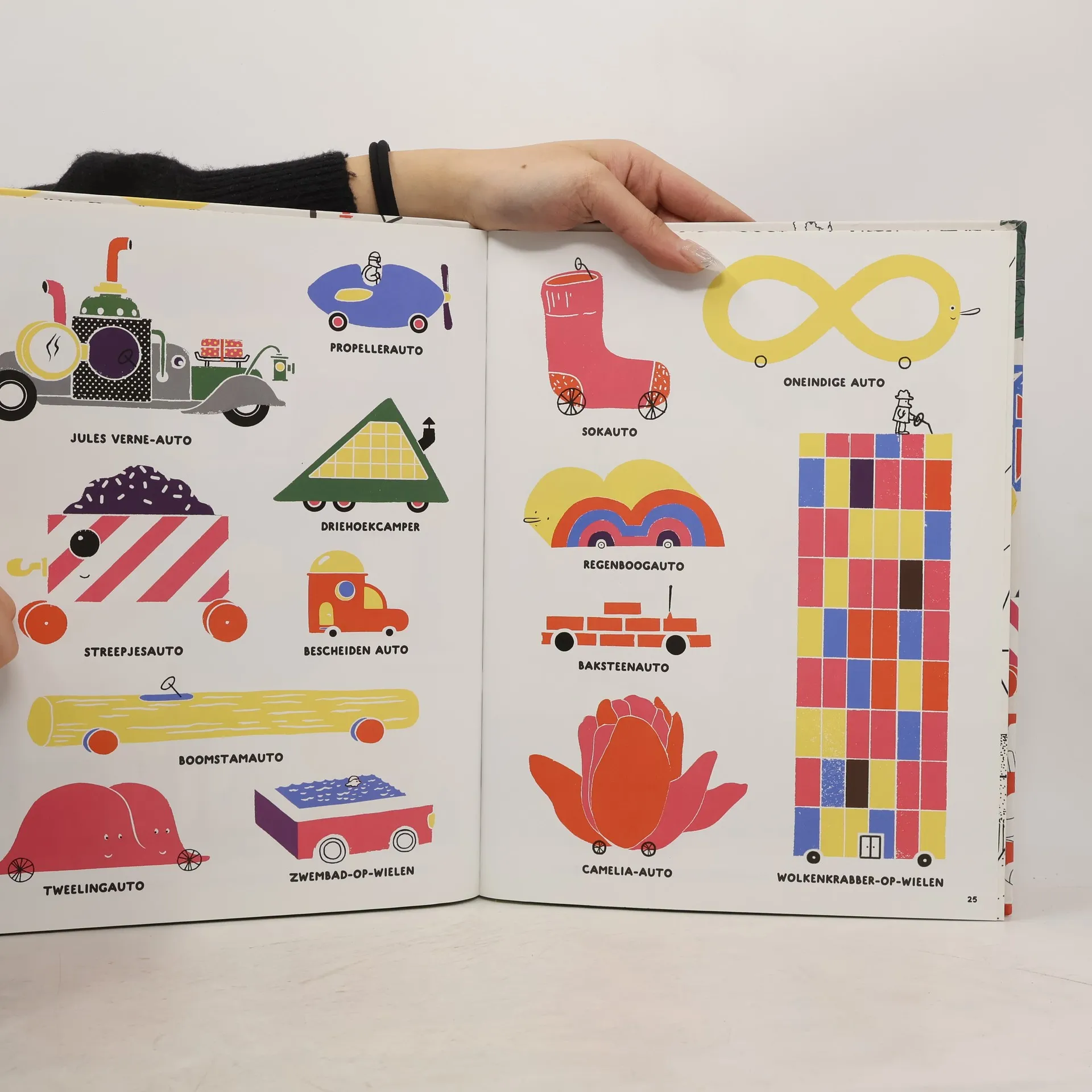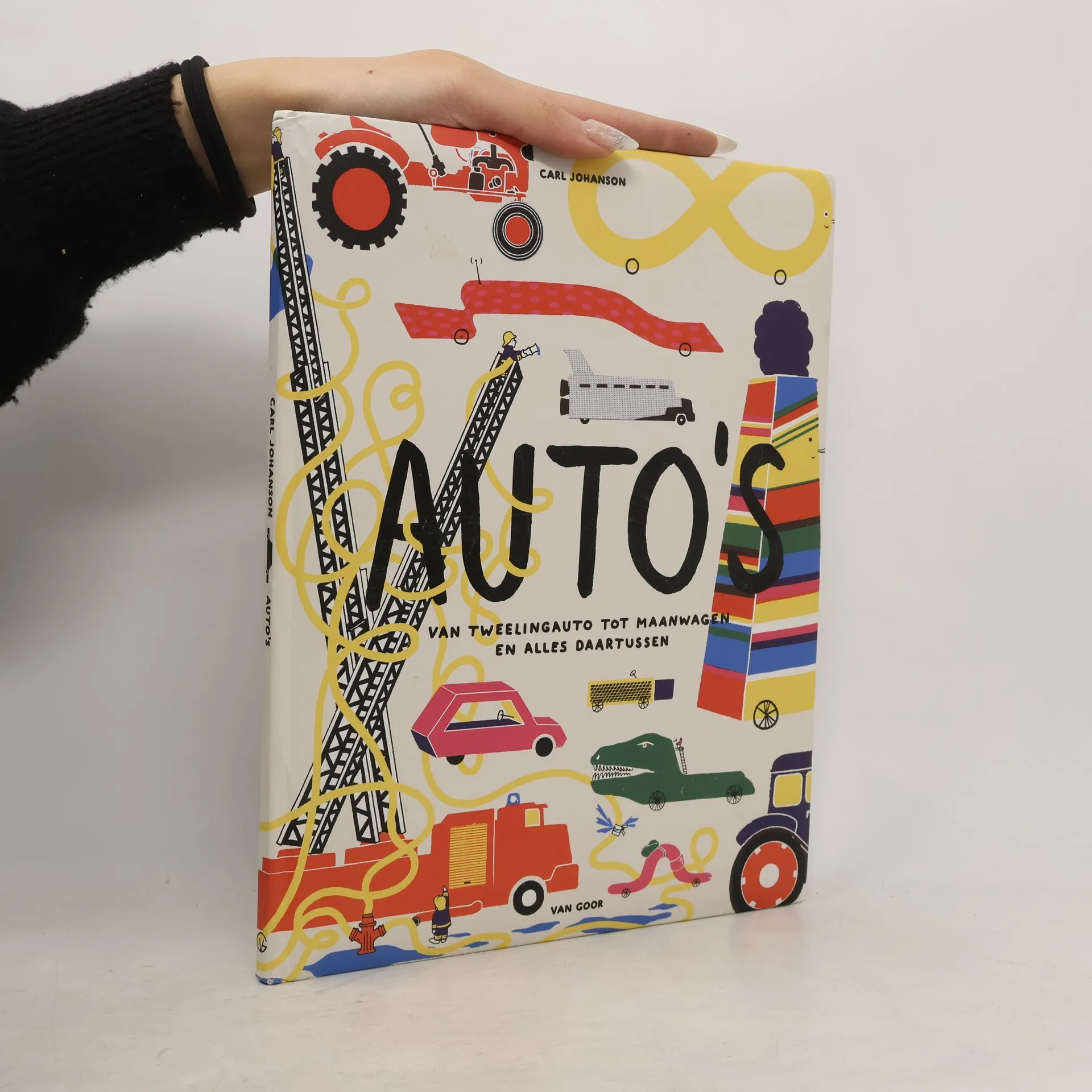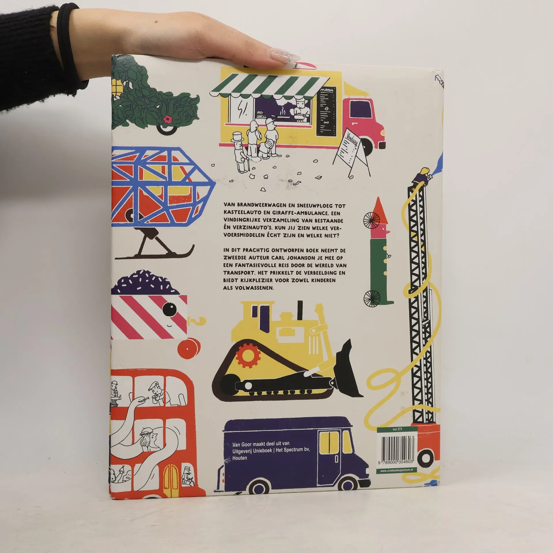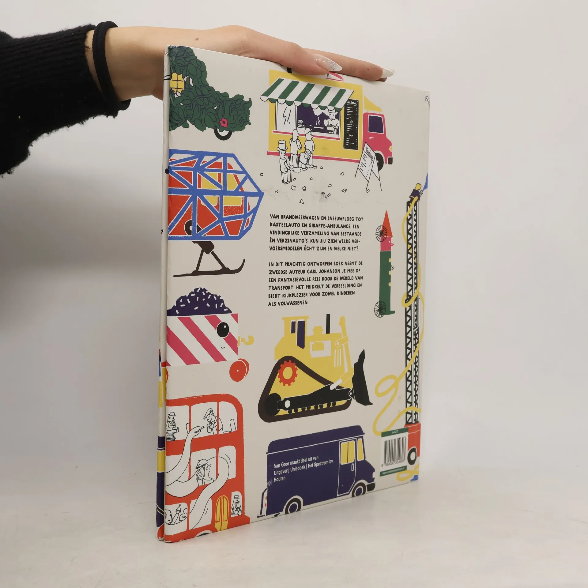 Van brandweerwagens, tractors en sneeuwschuivers tot een kasteelauto, een girafziekenauto en een onderzeewagen. Dit boek is een geweldige verzameling vervoermiddelen.
