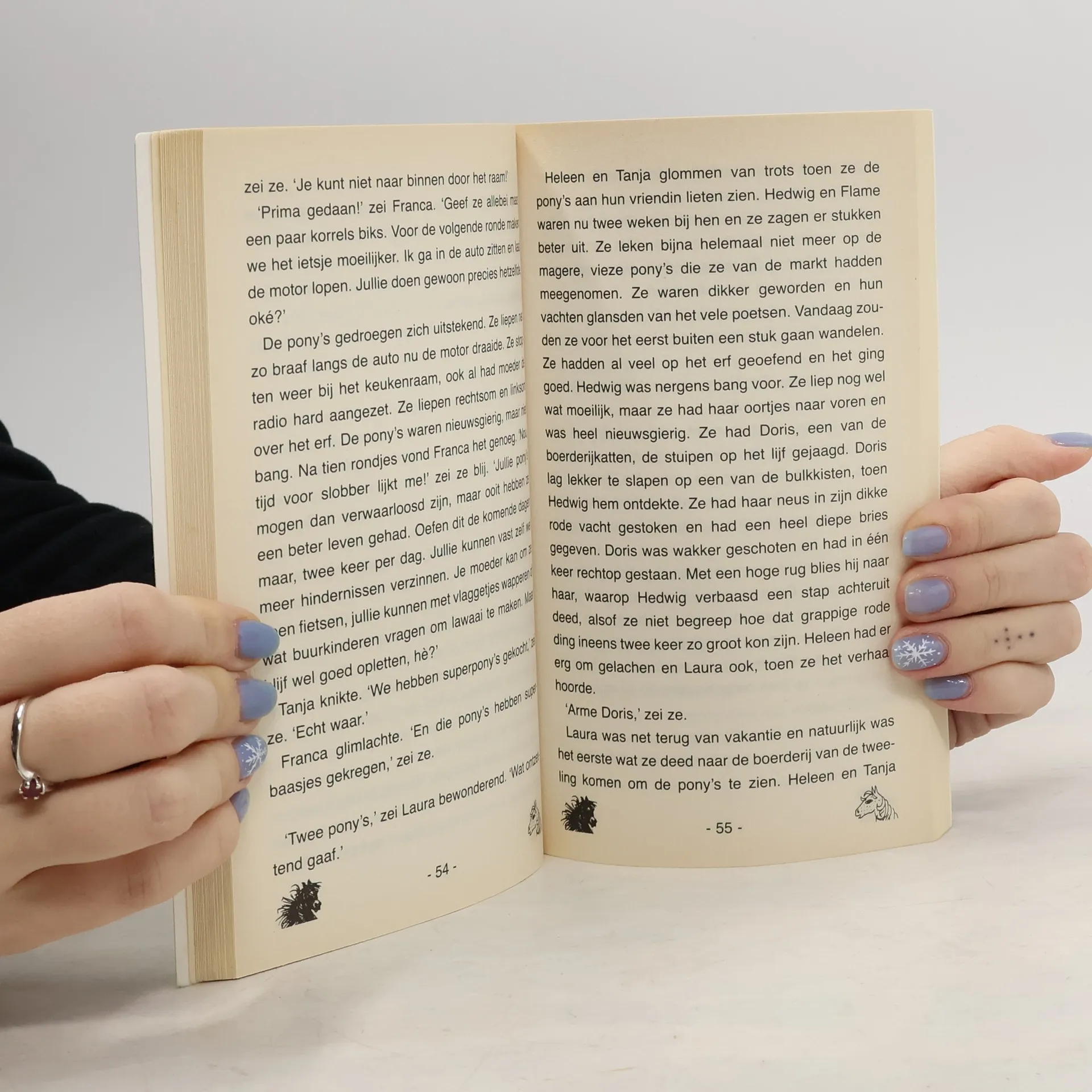 Tanja en Heleen zijn tweelingen. Ze lijken niet op elkaar, behalve één ding. Ze zijn stapelgek op paarden. Voor hun verjaardag krijgen ze geld om samen een pony te kopen, op de markt. Dat loopt heel anders dan ze gedacht hadden. En wat er dan gebeurt...