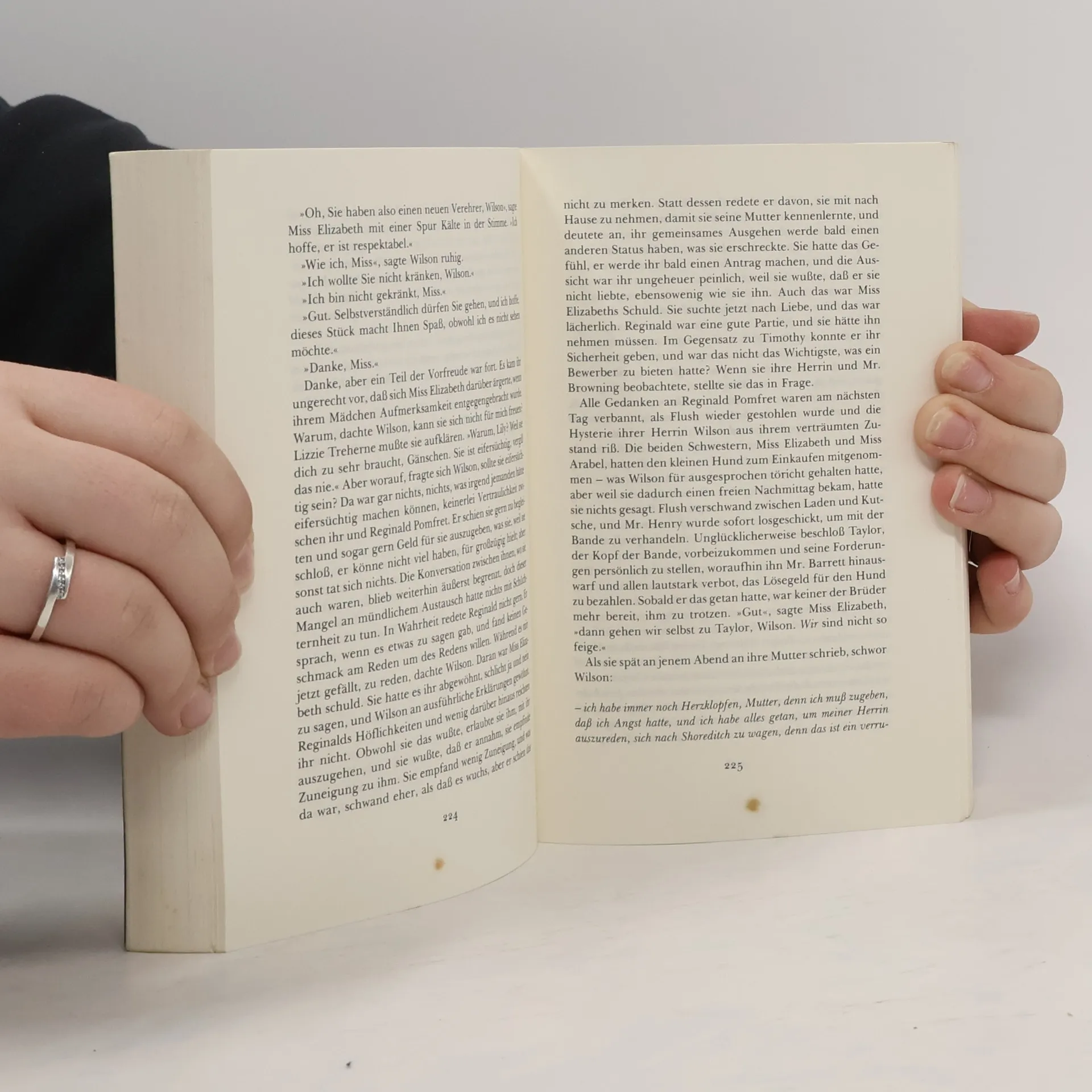 Vierundzwanzig Jahre alt ist Elizabeth Wilson, als sie 1844 in London in den Dienst der fast vierzigjährigen Dichterin Elizabeth Barrett tritt. Von Anfang an empfindet sie ihr gegenüber mehr als bloße, durch den Dienst auferlegte Ergebenheit. Und auch für die viktorianische Dichterin wird die »Wilson« bald zum guten Engel. Als Elizabeth Barrett heimlich den Dichter Robert Browning heiratet und aus dem Haus ihres Vaters flieht, ist sie es, die das Paar als einzige Vertraute über Paris, nach Pisa und von dort nach Florenz begleitet. Hier bleibt Elizabeth Wilson für sechzehn Guineen im Jahr und als Mädchen für alles die billige Arbeitskraft des Dichterpaares, das in seinen wunderbaren Gedichten humanistische Ideale besingt, ansonsten aber kein Verständnis für fremde Belange aufbringt. Als Elizabeth Wilson den Diener Ferdinand heiratet, führt eine zunehmende Entfremdung im Verhältnis von Herrin und Dienerin zu Kälte und Distanz und letztlich zur Trennung.