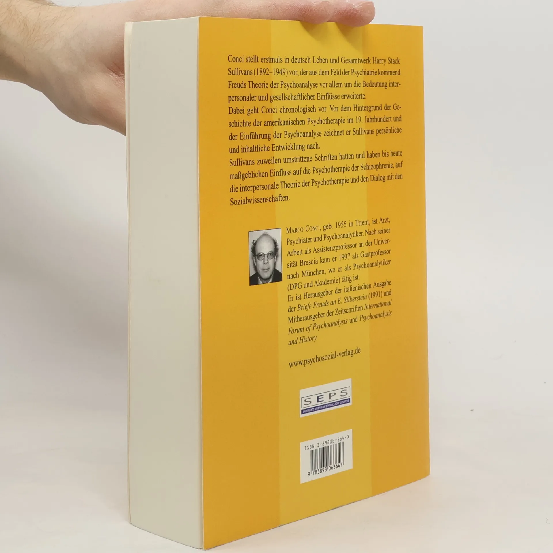 Conci stellt erstmals in deutsch Leben und Gesamtwerk Harry Stack Sullivans (1892-1949) vor, der aus dem Feld der Psychiatrie kommend Freuds Theorie der Psychoanalyse vor allem um die Bedeutung interpersonaler und gesellschaftlicher Einflüsse erweiterte. Dabei geht Conci chronologisch vor. Vor dem Hintergrund der Geschichte der amerikanischen Psychotherapie im 19. Jahrhundert und der Einführung der Psychoanalyse zeichnet er Sullivans persönliche und inhaltliche Entwicklung nach. Sullivans zuweilen umstrittene Schriften hatten und haben bis heute maßgeblichen Einfluss auf die Psychotherapie der Schizophrenie, auf die interpersonale Theorie der Psychotherapie und den Dialog mit den Sozialwissenschaften.