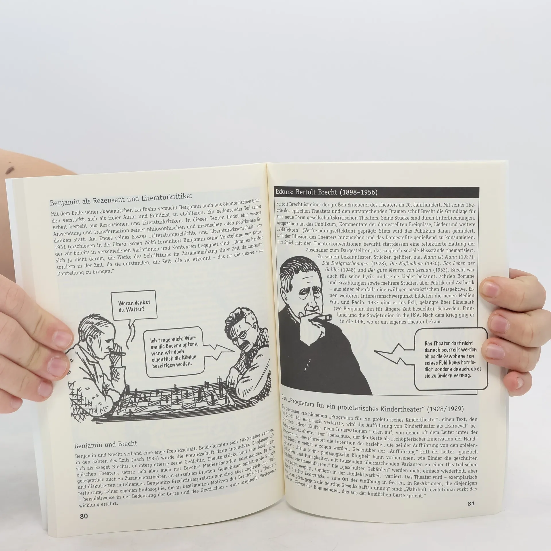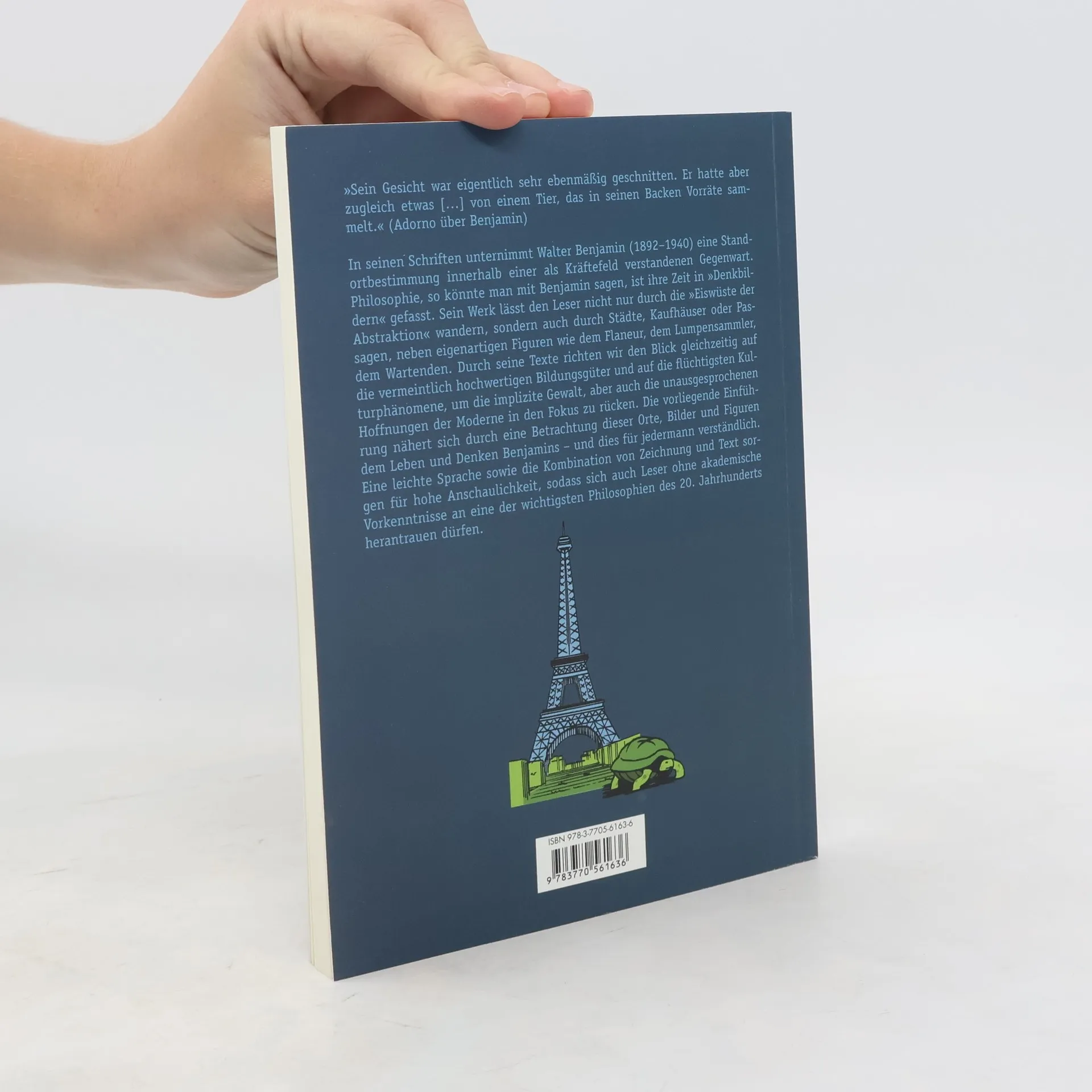 "Sein Gesicht war eigentlich sehr ebenmäßig geschnitten. Er hatte aber zugleich etwas (…) von einem Tier, das in seinen Backen Vorräte sammelt." (Adorno über Benjamin)In seinen Schriften unternimmt Walter Benjamin (1892–1940) eine Standortbestimmung innerhalb einer als Kräftefeld verstandenen Gegenwart. Philosophie, so könnte man mit Benjamin sagen, ist ihre Zeit in "Denkbildern" gefasst. Sein Werk lässt den Leser nicht nur durch die "Eiswüste der Abstraktion" wandern, sondern auch durch Städte, Kaufhäuser oder Passagen, neben eigenartigen Figuren wie dem Flaneur, dem Lumpensammler, dem Wartenden. Durch seine Texte richten wir den Blick gleichzeitig auf die vermeintlich hochwertigen Bildungsgüter und auf die flüchtigsten Kulturphänomene, um die implizite Gewalt, aber auch die unausgesprochenen Hoffnungen der Moderne in den Fokus zu rücken. Die vorliegende Einführung nähert sich durch eine Betrachtung dieser Orte, Bilder und Figuren dem Leben und Denken Benjamins – und dies für jedermann verständlich. Eine leichte Sprache, sowie die Kombination von Zeichnung und Text sorgen für hohe Anschaulichkeit, sodass sich auch Leser ohne akademische Vorkenntnisse an eine der wichtigsten Philosophien des 20. Jahrhunderts herantrauen dürfen.