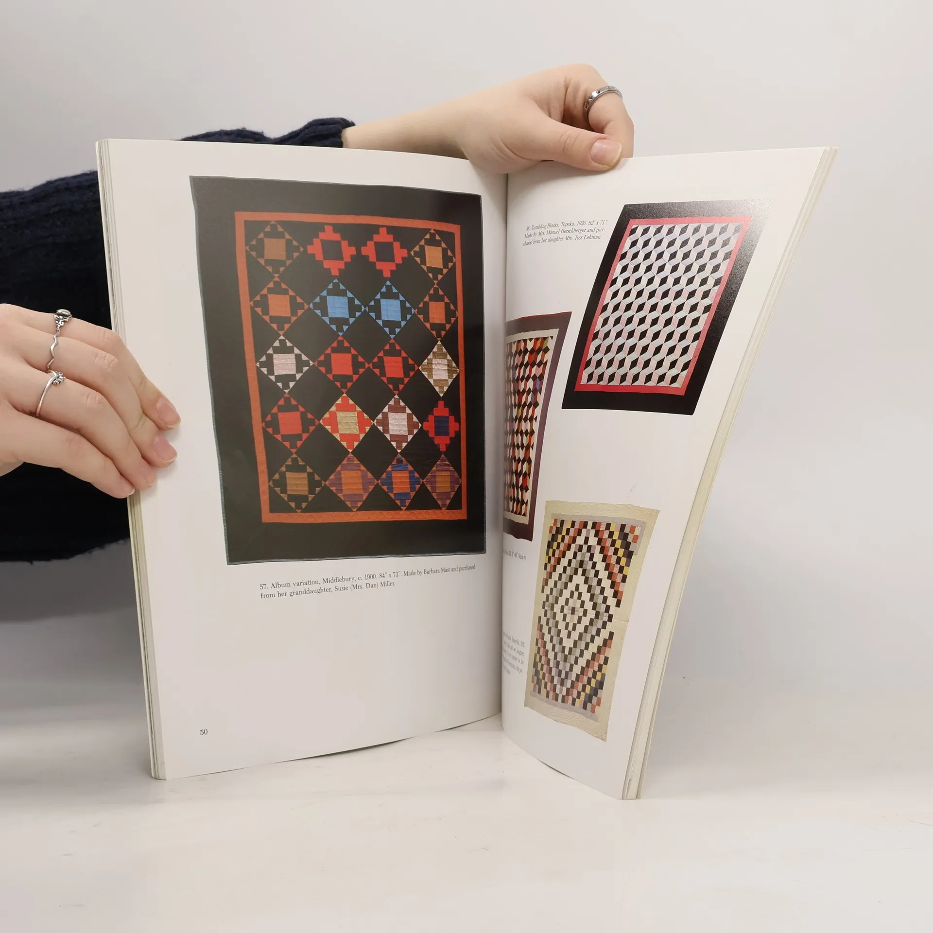 Shows a variety of Amish designs for quilts made before World War II, and briefly discusses the Amish lifestyle