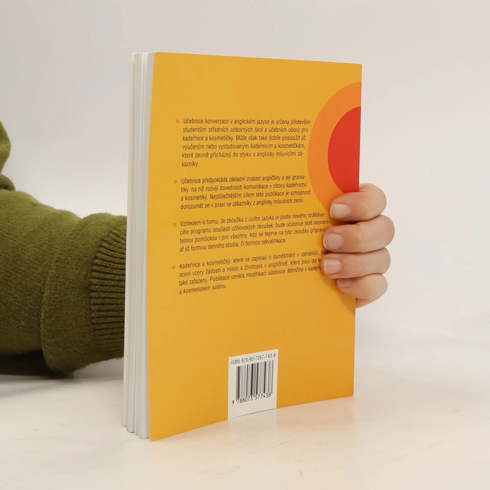 Učebnice konverzace v anglickém jazyce je určena především studentům středních odborných škol a učebních oborů pro kadeřnice a kosmetičky. Může však také dobře posloužit již vyučeným nebo vystudovaným kadeřnicím a kosmetičkám, které denně přicházejí do styku s anglicky mluvícími zákazníky. Publikace vznikla modifikací učebnice Němčina v kadeřnictví a kosmetickém salónu.