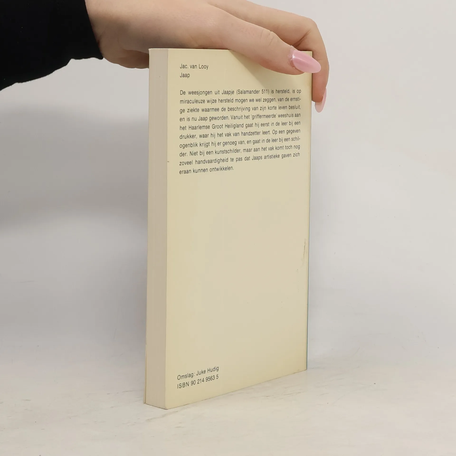 De weesjongen uit "Jaapje" (Salamander 511) is hersteld, is op miraculeuze wijze hersteld mogen we wel zeggen, van de ernstige ziekte waarmee de beschrijving van zijn korte leven besluit, en is nu Jaap geworden. Vanuit het 'griffermeerde' weeshuis aan het Haarlemse Groot Heilighland gaat hij eerst in de leer bij een drukker, waar hij het vak van handzetter leert. Op een gegeven ogenblik krijgt hij er genoeg van, en gaat in de leer bij een schilder. Niet bij een kunstschilder, maar aan het vak komt toch nog zoveel handvaardigheid te pas dat Jaaps artistieke gaven zich eraan kunnen ontwikkelen.