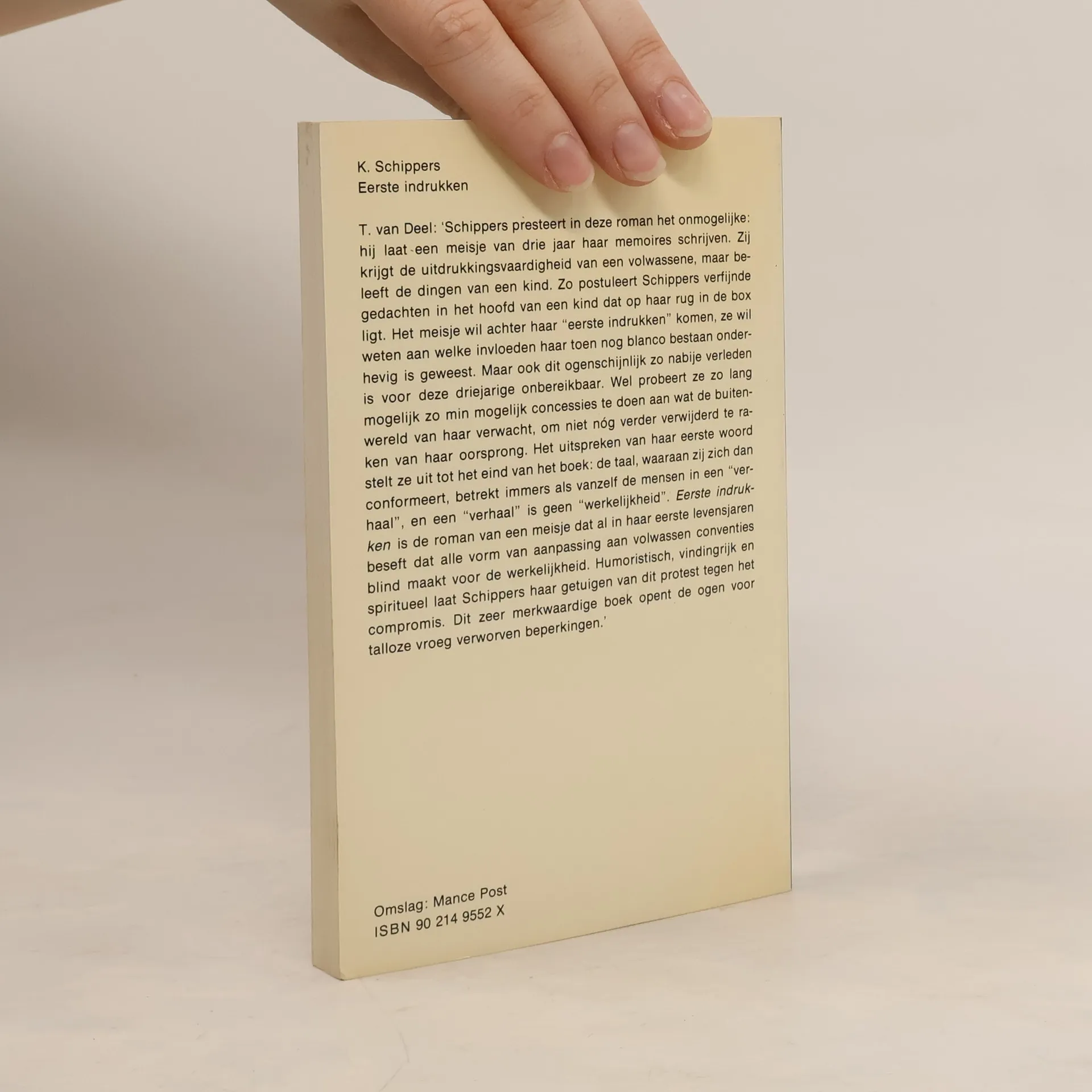 De eerste drie jaar zijn het belangrijkst. In die tijd maken we kennis met licht, ruimte en kleur, met geuren, klanken en woorden, met alles waaruit ons leven zal bestaan. Het kind doet alles voor het eerst, omgeven door volwassenen die het steeds weer optillen, kussen en door de kamer dragen zonder dat het daarom heeft gevraagd. Van die vroegste jeugd herinneren we ons zo goed als niets. Een enkel voorval, een paar kleuren, misschien een geur, dat is alles. Onze nieuwsgierigheid naar die jaren is zo groot dat het een eeuwig spel heeft opgeleverd: wat is je eerste jeugdherinnering? Voor de minnaars en minnaressen van dat spel is Eerste indrukken geschreven. Het gaat over een driejarig meisje dat zich alles herinnert. De hoofden boven de wieg, de eerste stappen, de keuze van het eerste woord. En natuurlijk de grote wedstrijd tussen de moeders, die hopen dat hun eigen zoon of dochter het kind van een ander in alles voor is.