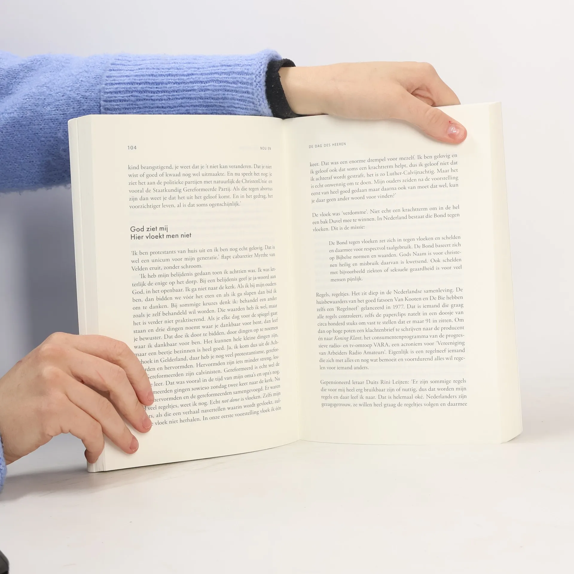 Wie bevolkt het land van kaas en klompen, koopmannen en dominees, Vermeer en Van Gogh? Wie zijn die heerlijk heldere mensen die praten en polderen, vechten tegen het water en genieten van hun nederwiedewiedewiet? Wie zijn de Friezen, de Zeeuwen, de Brabanders en de mensen uit de Randstad? Wie zijn die mensen onder de zeespiegel? Hoe gaan ze met elkaar om in hun land in verandering?00Patrick Van Gompel gaat onverdroten op zoek naar de ziel en het karakter van de Nederlanders. Hij baseert zich hiervoor op tientallen interviews met spraakmakende BN?ers en gewone noorderburen. Hij vult dit aan met een rijke voorraad aan liedjes, boeken, cabaret en media. Nou en? Leuk! Lekker!00Met medewerking van Geert Mak, Dick Matena, Jan Mulder, Myrthe van Velden, Paulien Cornelisse, Sylvana Simons, Lale Gül, Mensje van Keulen, Vic van de Reijt, Arnon Grunberg, Adriaan van Dis, Wierd Duk, Rob van Essen, Aimée de Jongh, Joris Luyendijk, Jan Jaap van der Wal, Tommy Wieringa, Abdelkader Benali, Kader Abdolah, Gerrit de Jager, Mirjam van Veen en vele anderen.