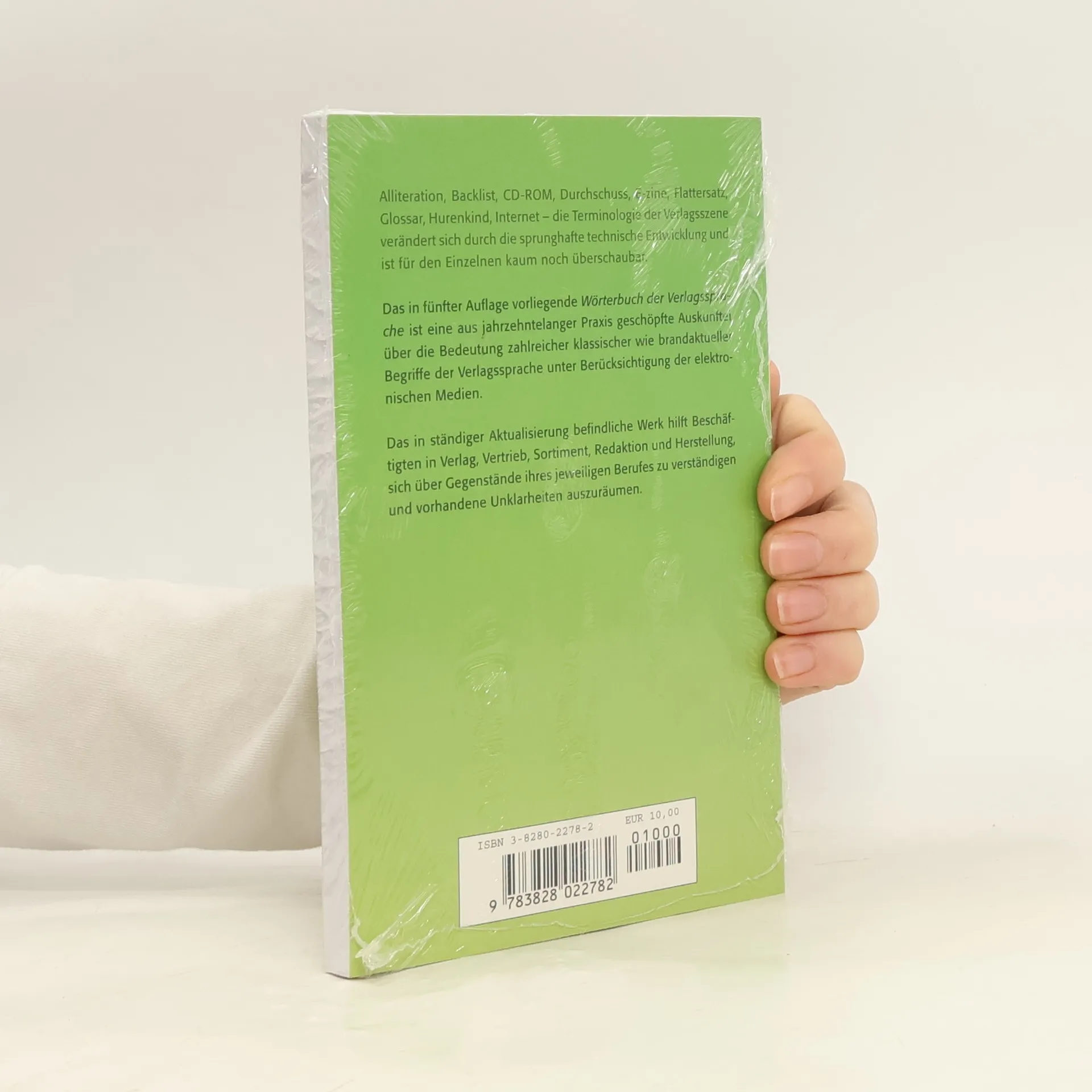Alliteration, Backlist, CD-ROM, Durchschuss, E-zine, Flattersatz, Glossar, Hurenkind, Internet – die Terminologie der Verlagsszene verändert sich durch die sprunghafte technische Entwicklung und ist für den Einzelnen kaum noch überschaubar. Das in fünfter Auflage vorliegende Wörterbuch der Verlagssprache ist eine aus jahrzehntelanger Praxis geschöpfte Auskunftei über die Bedeutung zahlreicher klassischer wie brandaktueller Begriffe der Verlagssprache unter Berücksichtigung der elektronischen Medien. Das in ständiger Aktualisierung befindliche Werk hilft Beschäftigten in Verlag, Vertrieb, Sortiment, Redaktion und Herstellung, sich über Gegenstände ihres jeweiligen Berufes zu verständigen und vorhandene Unklarheiten auszuräumen.