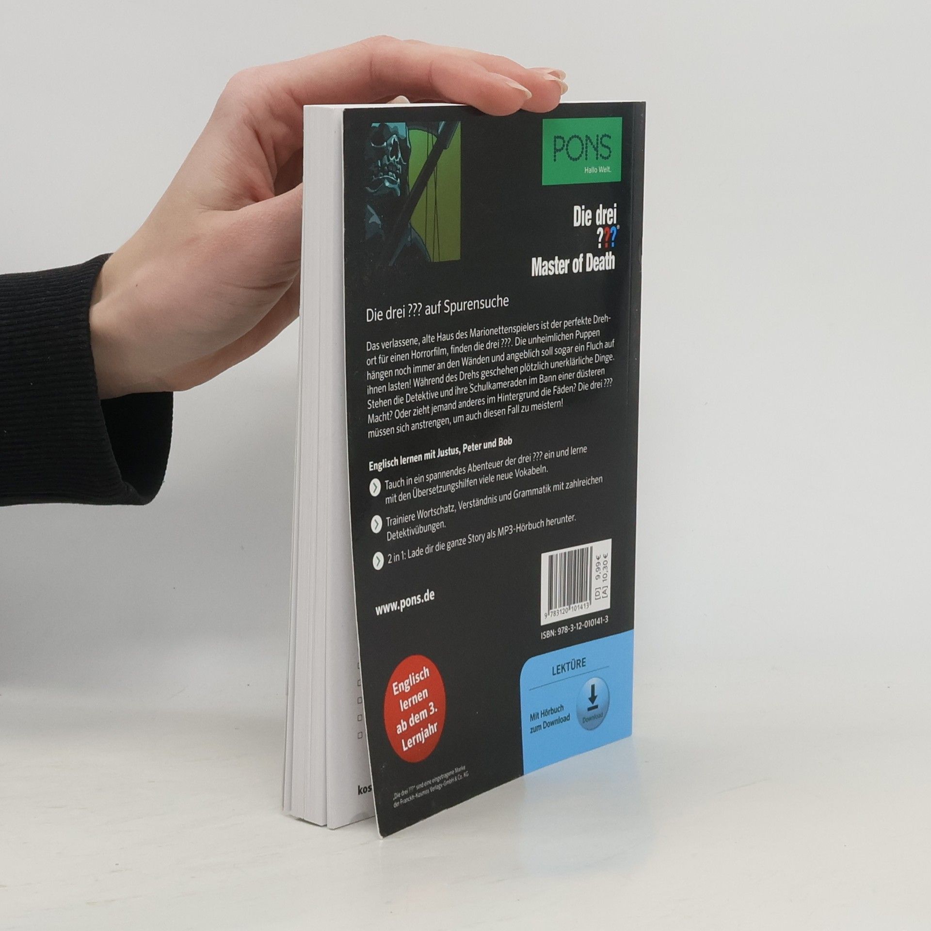 Die drei ??? auf Spurensuche Das verlassene, alte Haus des Marionettenspielers ist der perfekte Drehort für einen Horrorfilm, finden die drei ???. Die unheimlichen Puppen hängen noch immer an den Wänden und angeblich soll sogar ein Fluch auf ihnen lasten! Während des Drehs geschehen plötzlich unerklärliche Dinge. Stehen die Detektive und ihre Schulkameraden im Bann einer düsteren Macht? Oder zieht jemand anderes im Hintergrund die Fäden? Die drei ??? müssen sich anstrengen, um auch diesen Fall zu meistern! Englisch lernen mit Justus, Peter und Bob Tauch in ein spannendes Abenteuer der drei ??? ein und lerne mit den Übersetzungshilfen viele neue Vokabeln. Trainiere Wortschatz, Verständnis und Grammatik mit zahlreichen Detektivübungen. Lade dir die ganze Story als MP3-Hörbuch herunter. Für Englisch-Lernende ab dem 3. Lernjahr geeignet.