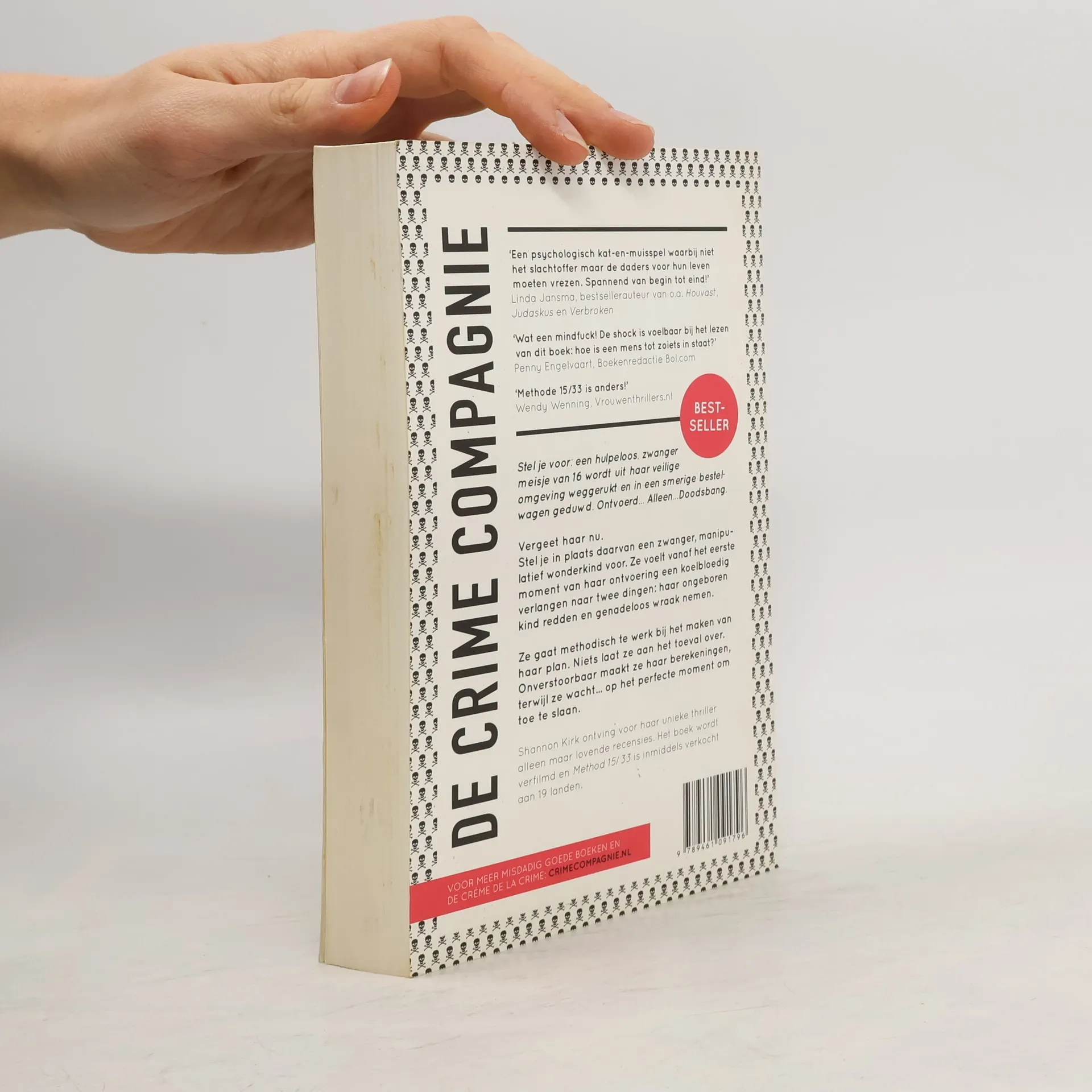 Stel je voor: een hulpeloos, zwanger meisje van 16 dat net uit de veiligheid van haar eigen omgeving is gerukt en in een smerige bestelwagen is geduwd. Ontvoerd ... Alleen ... Doodsbang. Vergeet haar nu ... Stel je in plaats daarvan een zwanger, manipulatief wonderkind voor. Ze wordt in een smerige bestelwagen geduwd en voelt vanaf het eerste moment van haar ontvoering een koelbloedig verlangen naar twee dingen: haar ongeboren kind redden en genadeloos wraak nemen. Ze gaat methodisch, berekenend en wetenschappelijk te werk bij het maken van haar plan. Is ze een klinische psychopaat? Niets laat ze aan het toeval over, onverstoorbaar maakt ze haar berekeningen en oefent ze, terwijl ze wacht... op het perfecte moment om toe te slaan. Methode 15/33 is wat er gebeurt als het slachtoffer net zo koudbloedig is als haar ontvoerders.