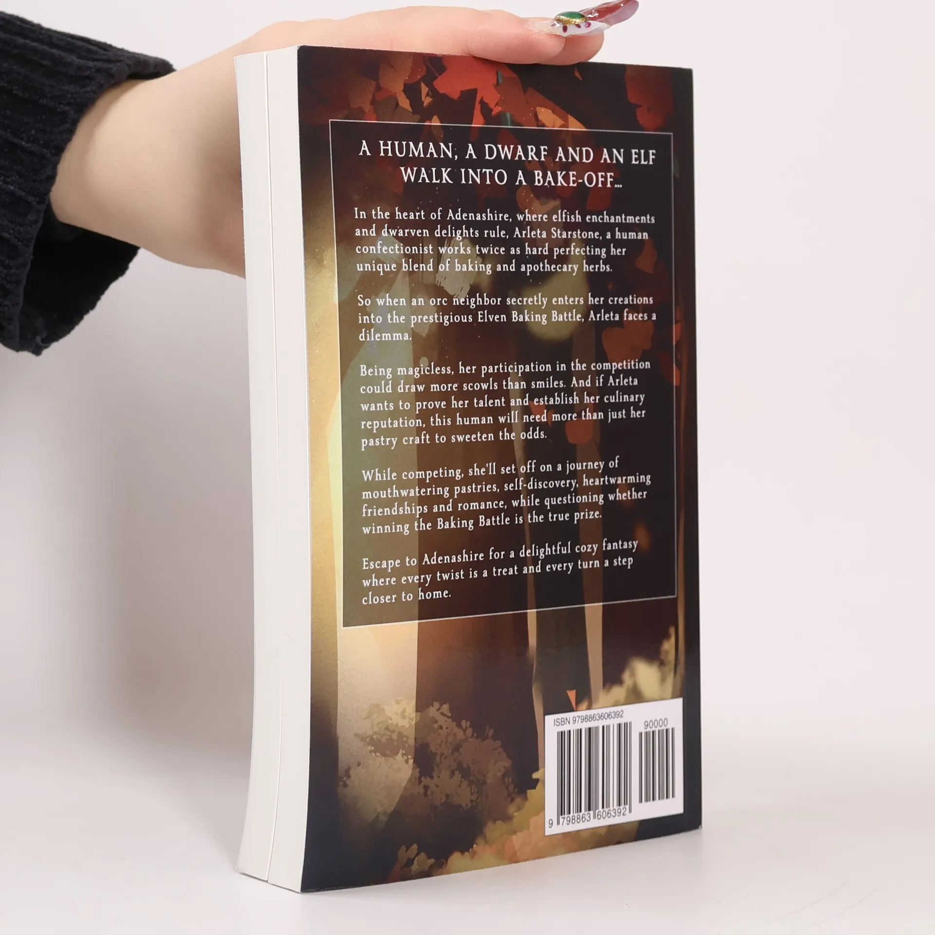 A human, a dwarf and an elf walk into a bake-off... In the heart of Adenashire, where elfish enchantments and dwarven delights rule, Arleta Starstone, a human confectionist works twice as hard perfecting her unique blend of baking and apothecary herbs. So when an orc neighbor secretly enters her creations into the prestigious Elven Baking Battle, Arleta faces a dilemma. Being magicless, her participation in the competition could draw more scowls than smiles. And if Arleta wants to prove her talent and establish her culinary reputation, this human will need more than just her pastry craft to sweeten the odds. While competing, she'll set off on a journey of mouthwatering pastries, self-discovery, heartwarming friendships and romance, while questioning whether winning the Baking Battle is the true prize. Escape to Adenashire for a delightful cozy fantasy where every twist is a treat and every turn a step closer to home.