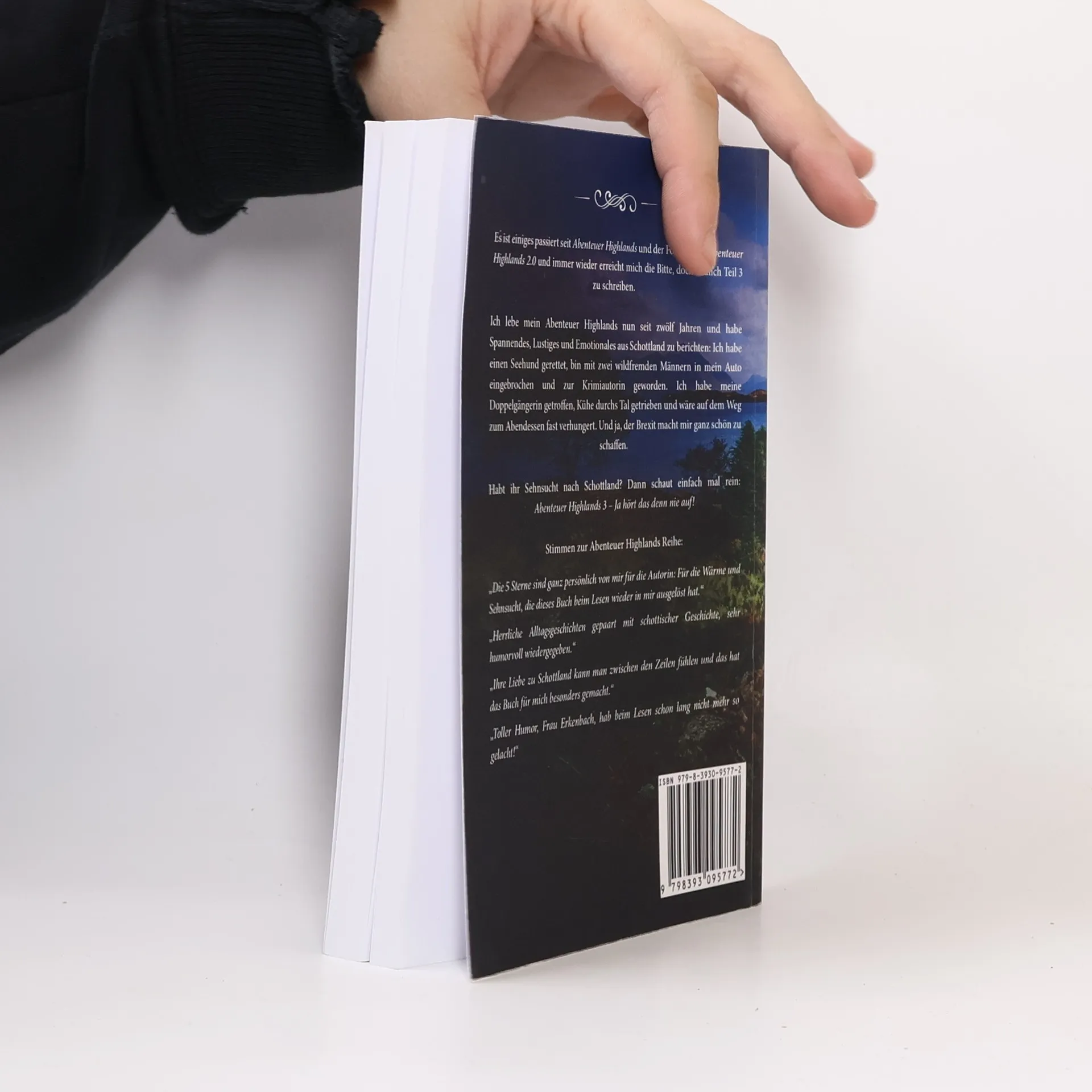 Es ist einiges passiert seit Abenteuer Highlands 2.0. Immer wieder erreicht mich die Bitte, doch endlich Teil 3 zu schreiben. Abenteuer Highlands war als einmaliges Buch gedacht. Dann kam ein zweites dazu, weil viele danach gefragt hatten, wann und wie es weitergeht mit meinem Abenteuer. Ich lebe das Abenteuer seit zwölf Jahren und habe seit Teil 2 weitere spannende Abenteuer erlebt: Ich habe einen Seehund gerettet, bin in mein Auto eingebrochen, habe herausgefunden, dass Santa Claus Gummistiefel trägt, bin zur Krimiautorin geworden und habe meine Doppelgängerin getroffen. Und ja, der Brexit macht mir ganz schön zu schaffen. Also schreibe ich weiter und habe jede Menge Spannendes zu berichten. Abenteuer Highlands 3: Ja hört das denn nie auf! Stimmen zur Abenteuer Highlands Reihe: "Die 5 Sterne sind ganz persönlich von mir für die Autorin: Für die Wärme und Sehnsucht, die dieses Buch beim Lesen wieder in mir ausgelöst hat." "Herrliche Alltagsgeschichten gepaart mit schottischer Geschichte, sehr humorvoll wiedergegeben." "Ihre Liebe zu Schottland kann man zwischen den Zeilen fühlen und das hat das Buch für mich besonders gemacht." "Toller Humor, Frau Erkenbach, hab beim Lesen schon lang nicht mehr so gelacht!"