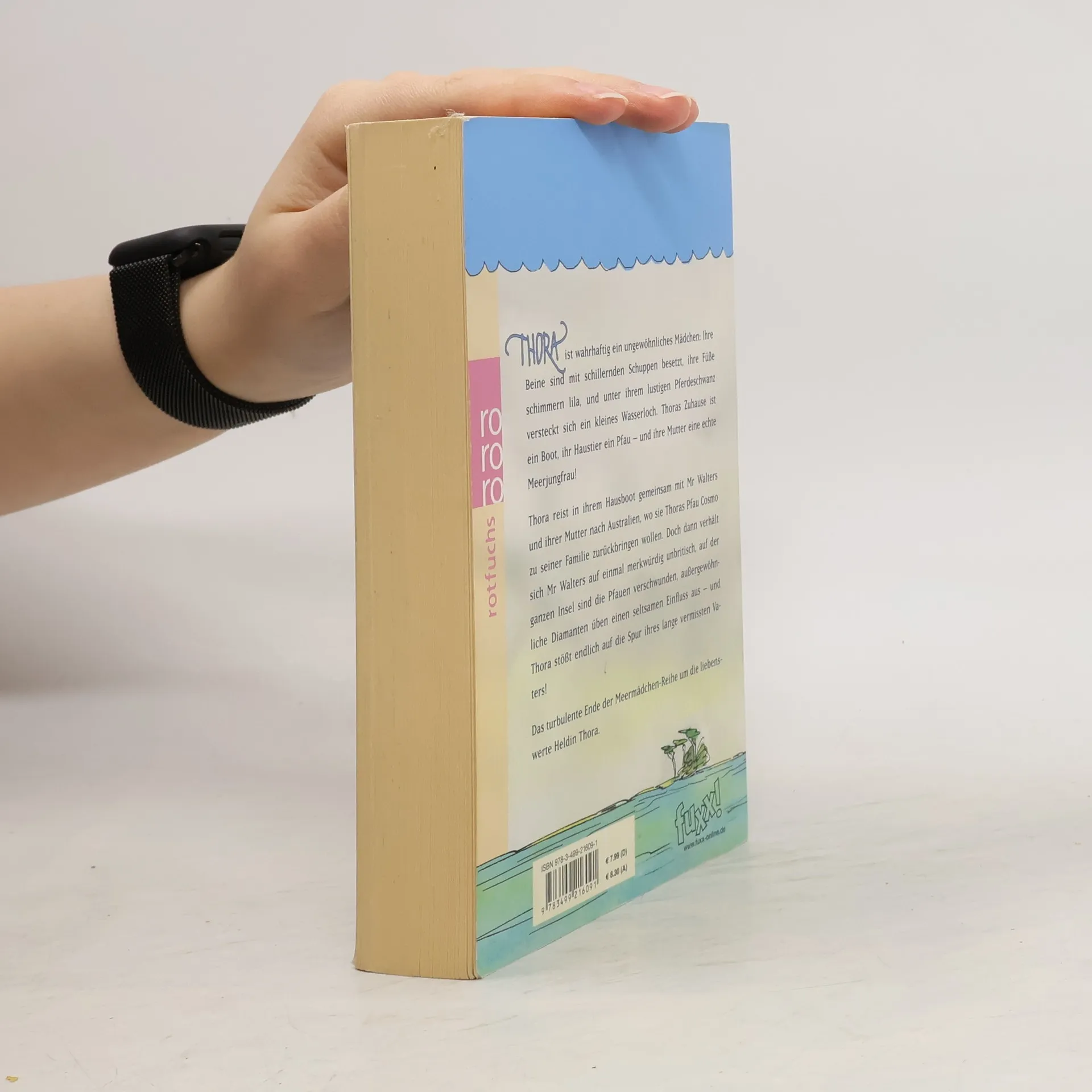 THORA ist wahrhaftig ein ungewöhnliches Mädchen: Ihre Beine sind mit schillernden Schuppen besetzt, ihre Füße schimmern lila, und unter ihrem lustigen Pferdeschwanz versteckt sich ein kleines Wasserloch. Thoras Zuhause ist ein Boot, ihr Haustier ein Pfau – und ihre Mutter eine echte Meerjungfrau! Thora reist in ihrem Hausboot gemeinsam mit Mr Walters und ihrer Mutter nach Australien, wo sie Thoras Pfau Cosmo zu seiner Familie zurückbringen wollen. Doch dann verhält sich Mr Walters auf einmal merkwürdig unbritisch, auf der ganzen Insel sind die Pfauen verschwunden, außergewöhnliche Diamanten üben einen seltsamen Einfluss aus – und Thora stößt endlich auf die Spur ihres lange vermissten Vaters! Das turbulente Ende der Meermädchen-Reihe um die liebenswerte Heldin Thora.