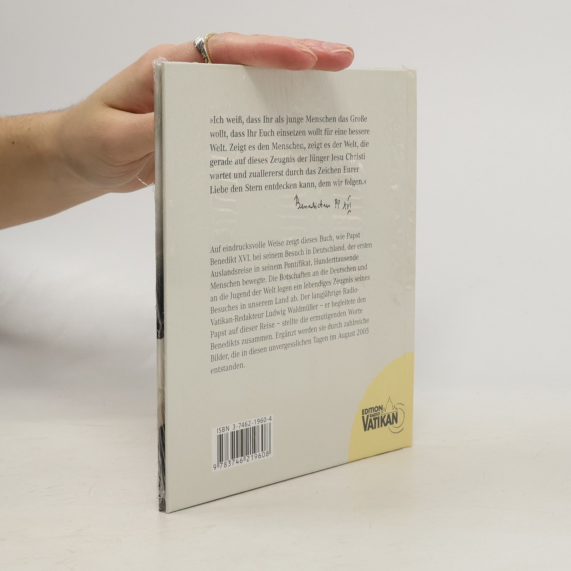 Sonderausgabe mit CD: Botschaften des Papstes an Deutschland und die Jugend. Auf eindrucksvolle Weise zeigt dieses Buch, wie Papst Benedikt XVI. bei seinem Besuch in Deutschland, der ersten Auslandsreise in seinem Pontifikat, Millionen von Menschen tief bewegte. Texte der Botschaften an die deutschen Landsleute und an die Jugend der Welt geben ein lebendiges Bild und Zeugnis seines Besuches in unserem Land ab. Zu den ermutigenden Worten wurden die schönsten Bilder der unvergesslichen Tage im August 2005 gestellt.