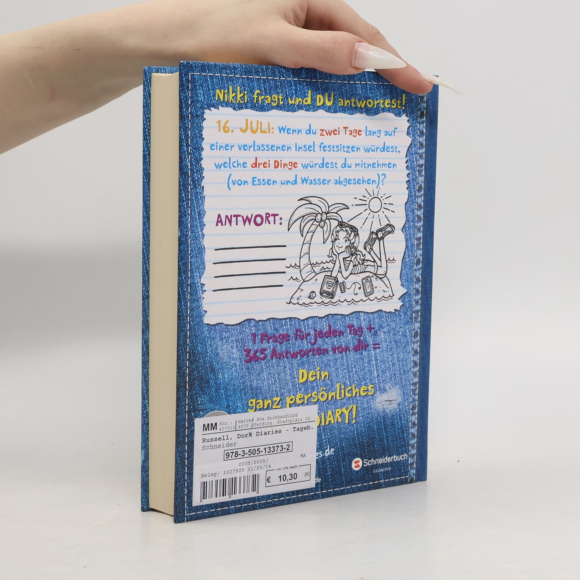 Ein echter Dork führt Tagebuch, und Nikki zeigt, wie es richtig geht. Sie stellt ihren Lesern einfach 365 superwichtige Fragen, eine für jeden Tag im Jahr. Mit wem würdest du gern mal den Platz tauschen, welchen Song kannst du dir immer wieder anhören, welches gruslige Outfit versteckt sich in deinem Kleiderschank …? Und - am allerwichtigsten - wie lief dein erstes Date? Das Beste daran, man kann jede Frage zweimal beantworten und so sehen, was sich in einem Jahr alles verändert hat.