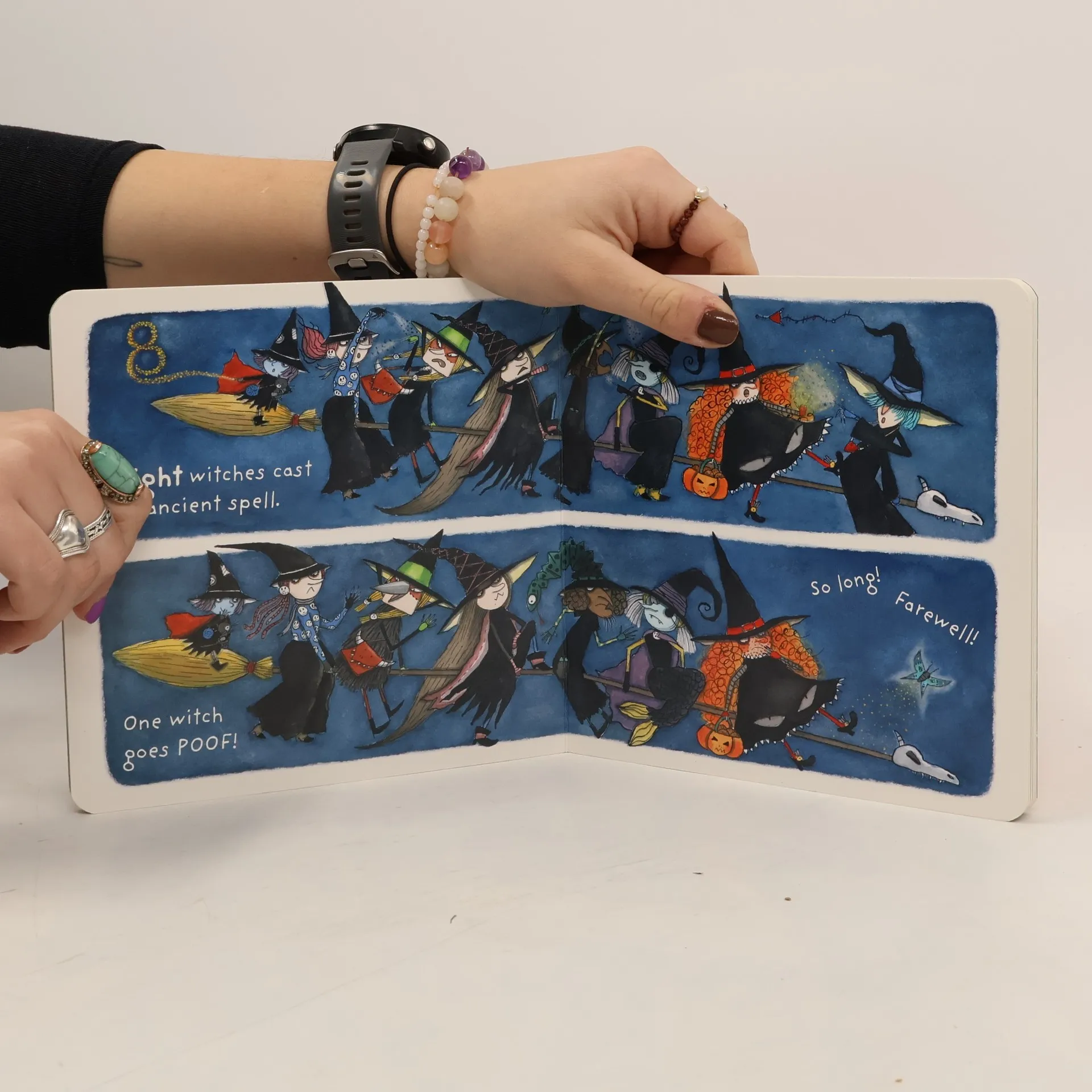 Ten Little Monkeys meets Room on the Broom in this counting-focused Halloween-themed read aloud; now as a board book! One goes zip,two go zoom.Three witches glide from room to room. So begins this witchy counting story, now as a board book. Counting up from 1 to 10 and back down again, ten witches jump on a broom--and then fall off one by one! Written in pitch-perfect rhyme, and full of fun read-aloud energy that will have kids memorizing lines and clamoring to read the book again and again, this book hits the mash-up sweet spot between an important concept and Halloween fun!