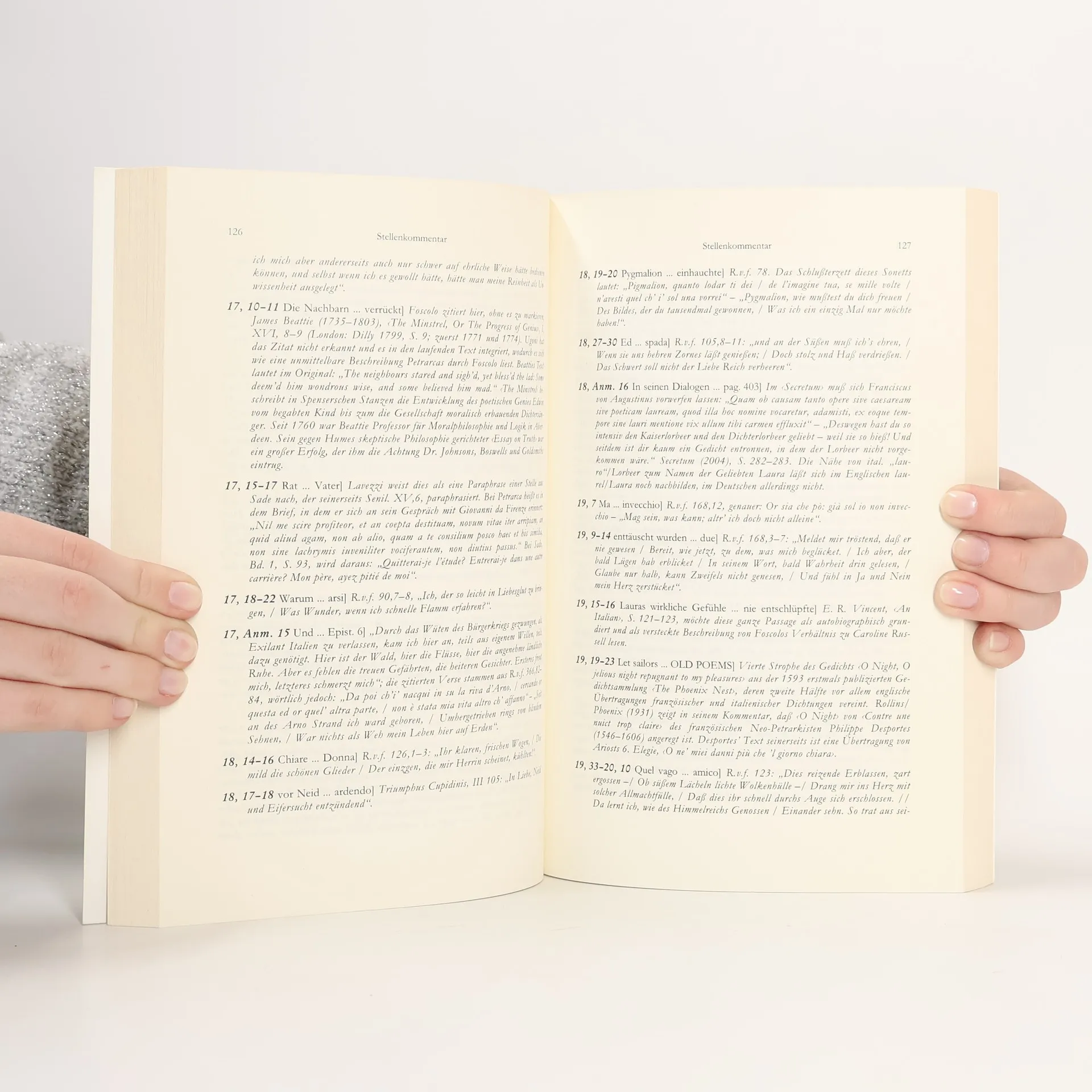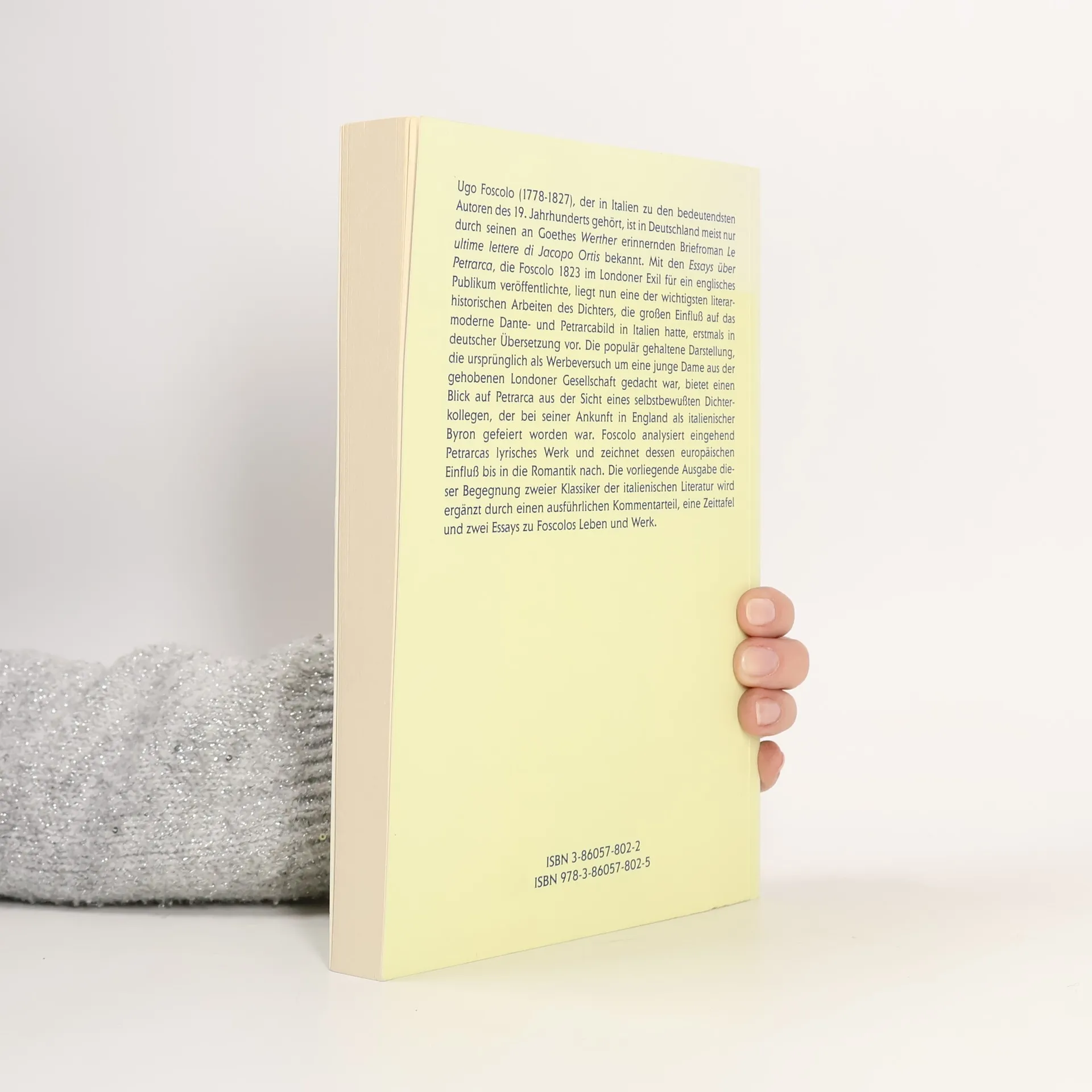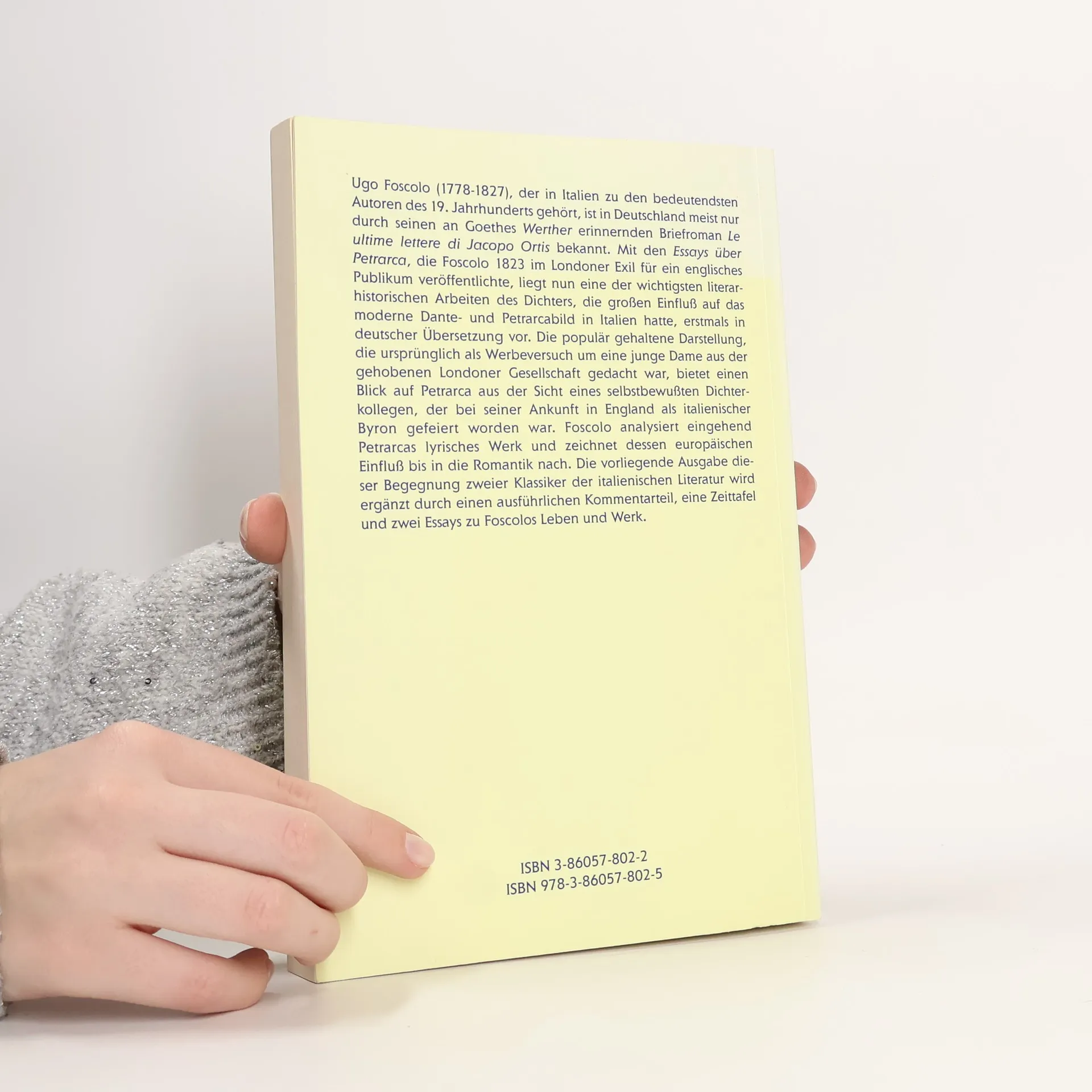 Ugo Foscolo (1778-1827), der in Italien zu den bedeutendsten Autoren des 19. Jahrhunderts gehört, ist in Deutschland meist nur durch seinen an Goethes „Werther“ erinnernden Briefroman „Le ultime lettere di Jacopo Ortis“ bekannt. Mit den „Essays über Petrarca“, die Foscolo 1823 im Londoner Exil für ein englisches Publikum veröffentlichte, liegt nun eine der wichtigsten literarhistorischen Arbeiten des Dichters, die großen Einfluß auf das moderne Dante- und Petrarcabild in Italien hatte, erstmals in deutscher Übersetzung vor. Die populär gehaltene Darstellung, die ursprünglich als Werbeversuch um eine junge Dame aus der gehobenen Londoner Gesellschaft gedacht war, bietet einen Blick auf Petrarca aus der Sicht eines selbstbewußten Dichterkollegen, der bei seiner Ankunft in England als italienischer Byron gefeiert worden war. Foscolo analysiert eingehend Petrarcas lyrisches Werk und zeichnet dessen europäischen Einfluß bis in die Romantik nach. Die vorliegende Ausgabe dieser Begegnung zweier Klassiker der italienischen Literatur wird ergänzt durch einen ausführlichen Kommentarteil, eine Zeittafel und zwei Essays zu Foscolos Leben und Werk.
