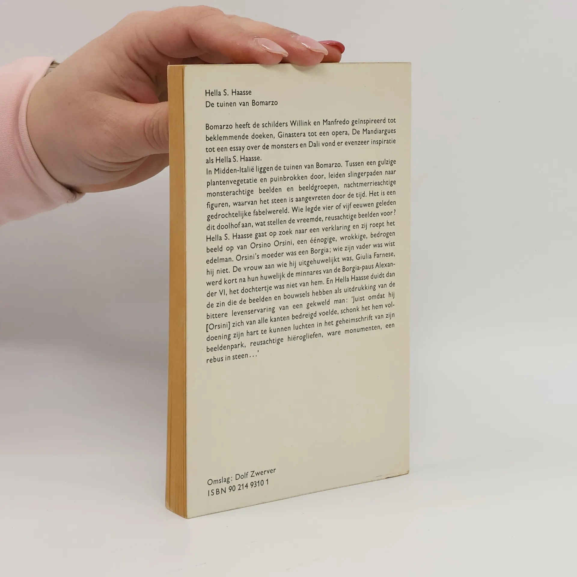 In Midden-Italië liggen de raadselachtige tuinen van Bomarzo, sinds mensenheugenis inspiratiebron van veel kunstenaars, onder wie Willink en Dali. Tussen een gulzige plantenvegetatie en ruïnes leiden slingerpaden naar groteske beelden en beeldengroepen, nachtmerrieachtige figuren waarvan het steen in aangetast door de tijd. Wie legde die wonderlijke beeldenpark zo’n vijf eeuwen geleden aan? En wat willen deze merkwaardige beelden ons zeggen? Hella S. Haasse heeft een oplossing gezocht voor die raadsels en komt in de sinistere wereld van de Borgia’s terecht. Ze vermoedt dat het park wel een het handschrift zou kunnen zijn van een gekweld man. Haasses zoektocht evoceert een schitterend, minder bekend beeld van de wereld van de Renaissance. De tuinen van Bomarzo is onbetwist een meesterwerk in het imposante oeuvre van Haasse. Hier vindt men in geconcentreerde vorm de belangrijkste thema’s en motieven bij elkaar die haar werk samenhang verschaffen.
