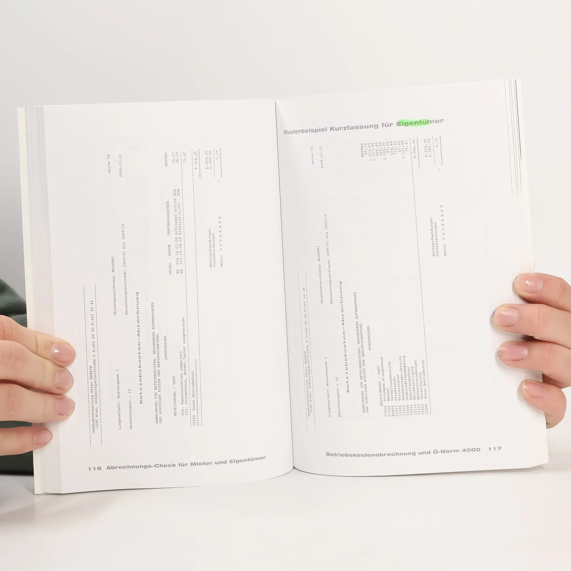 Jedes Jahr legt die Hausverwaltung eine Abrechnung über die Ausgaben vor, die sie im Namen der Wohnungseigentümer getätigt hat. Diese beinhaltet die Betriebskostenübersicht, Waschküchen-, Lift- oder Heizkostenabrechnungen. Doch wie weiß man, ob dabei korrekt vorgegangen wurde?Immer wieder zeigt sich, dass durch Fehler in der Abrechnung Eigentümern und Mietern unnötige Mehrkosten entstehen, die sich leicht vermeiden ließen.Die Gebäudeverwalter Peter und Irene Nemeth weisen in ihrem Praxisratgeber den Weg durch den Abrechnungsdschungel, indem sie erklären, wie man Vorschreibungen und Abrechnungen überprüft. Die Autoren zeigen häufige Fehler auf und legen anhand zahlreicher Beispiele dar, wie es Mietern und Eigentümern gelingt, den Überblick über die tatsächlichen Ausgaben zu erhalten und bares Geld zu sparen.