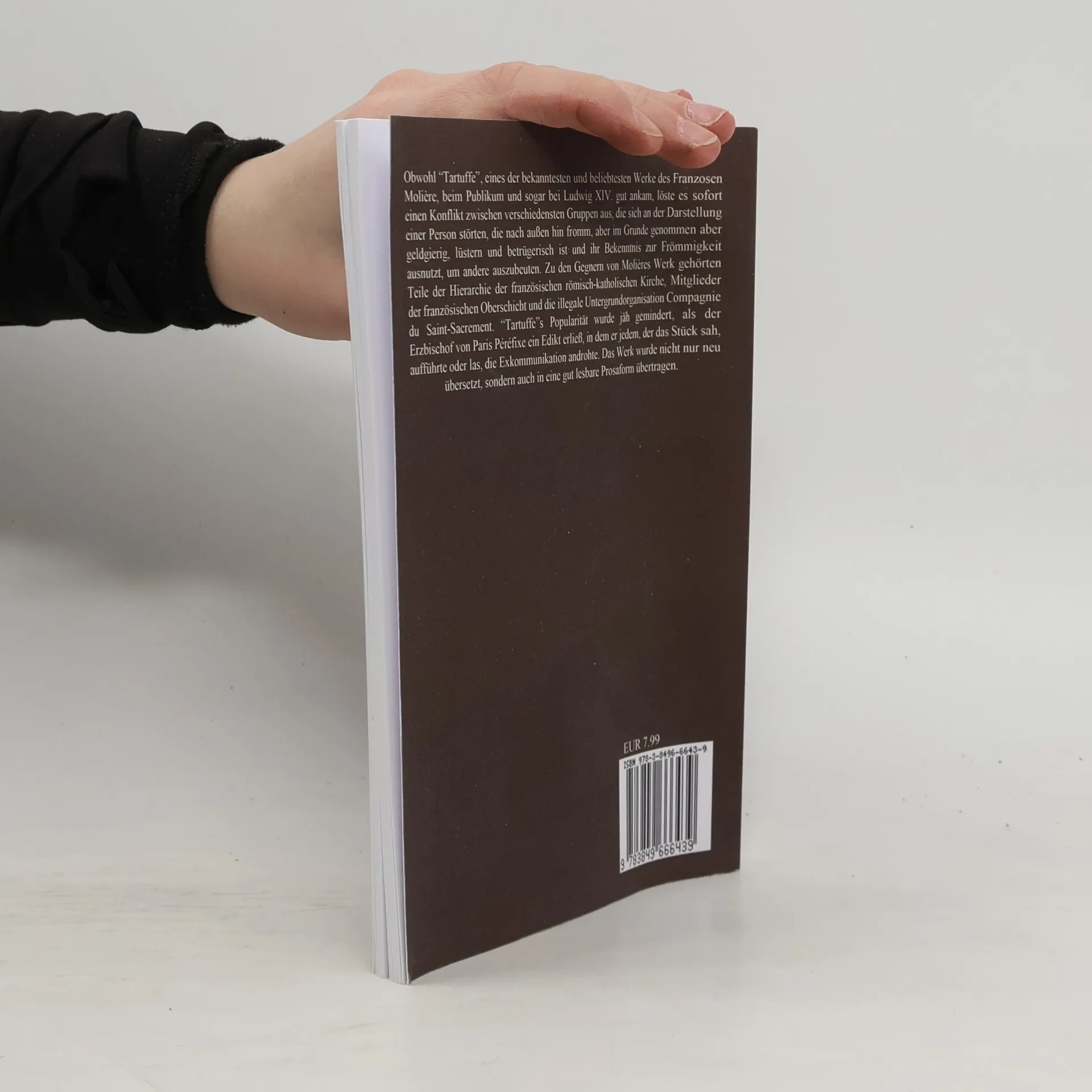 Obwohl "Tartuffe", eines der bekanntesten und beliebtesten Werke des Franzosen Molière, beim Publikum und sogar bei Ludwig XIV. gut ankam, löste es sofort einen Konflikt zwischen verschiedensten Gruppen aus, die sich an der Darstellung einer Person störten, die nach außen hin fromm, aber im Grunde genommen aber geldgierig, lüstern und betrügerisch ist und ihr Bekenntnis zur Frömmigkeit ausnutzt, um andere auszubeuten. Zu den Gegnern von Molières Werk gehörten Teile der Hierarchie der französischen römisch-katholischen Kirche, Mitglieder der französischen Oberschicht und die illegale Untergrundorganisation Compagnie du Saint-Sacrement. "Tartuffe"s Popularität wurde jäh gemindert, als der Erzbischof von Paris Péréfixe ein Edikt erließ, in dem er jedem, der das Stück sah, aufführte oder las, die Exkommunikation androhte. Das Werk wurde nicht nur neu übersetzt, sondern auch in eine gut lesbare Prosaform übertragen.