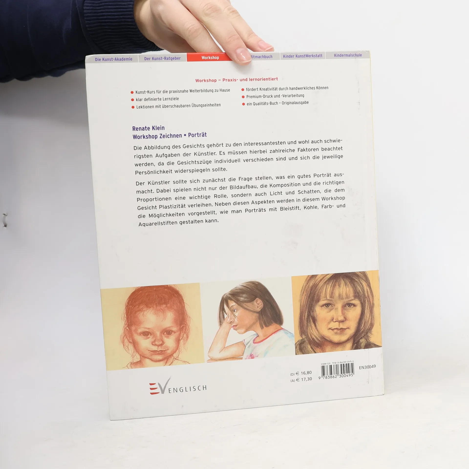Die Abbildung des Gesichts gehört seit jeher zu den interessantesten und wohl auch schwierigsten Aufgaben der Künstler. Dabei müssen zahlreiche Faktoren beachtet werden, da die Gesichtszüge individuell verschieden sind und immer wieder neu erfasst werden müssen. Der Künstler sollte sich zunächst die Frage stellen, was ein gutes Porträt ausmacht. Dabei spielen nicht nur der Bildaufbau, die Komposition und die richtigen Proportionen eine wichtige Rolle, sondern auch Licht und Schatten, die dem Gesicht Plastizität verleihen. Neben diesen Aspekten werden in diesem Workshop die Möglichkeiten vorgestellt, wie man Porträts mit Bleistift, Kohle, Farb- und Aquarellstiften gestalten kann.