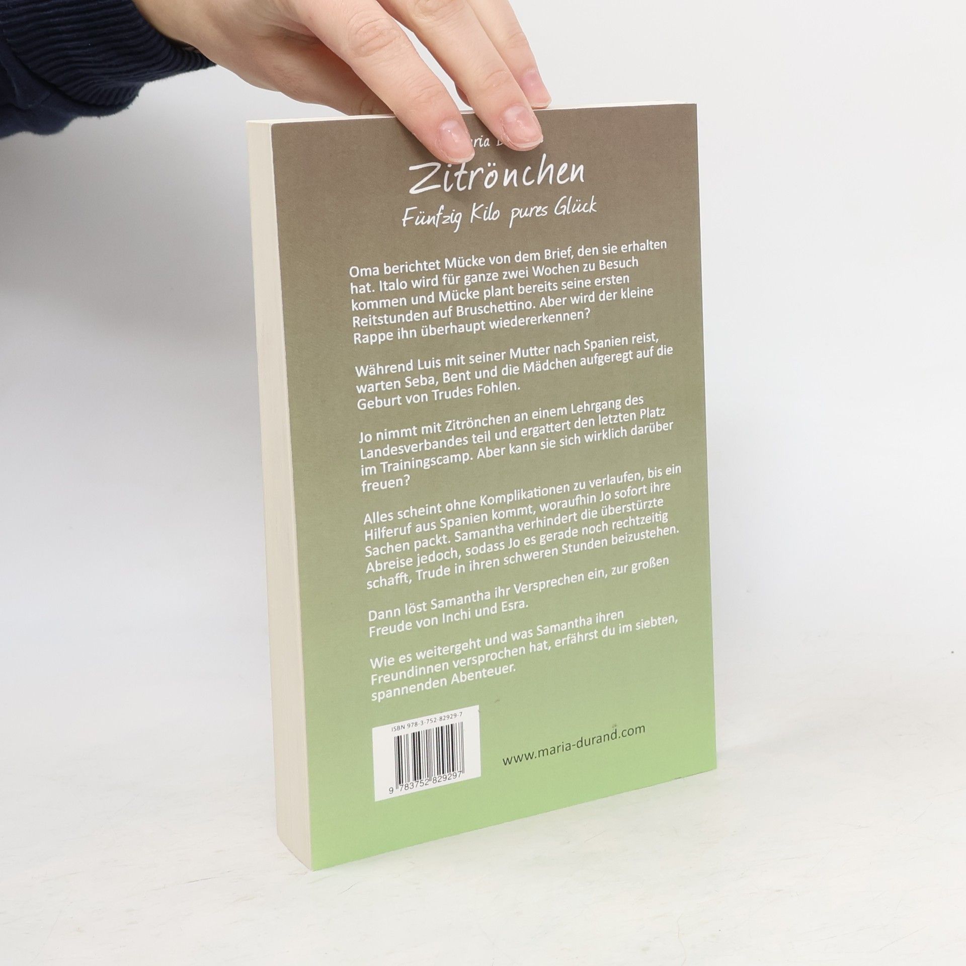 Oma berichtet Mücke von dem Brief, den sie erhalten hat. Italo wird für ganze zwei Wochen zu Besuch kommen und Mücke plant bereits seine ersten Reitstunden auf Bruschettino. Aber wird der kleine Rappe ihn überhaupt wiedererkennen? Während Luis mit seiner Mutter nach Spanien reist, warten Seba, Bent und die Mädchen aufgeregt auf die Geburt von Trudes Fohlen. Jo nimmt mit Zitrönchen an einem Lehrgang des Landesverbandes teil und ergattert den letzten Platz im Trainingscamp. Aber kann sie sich wirklich darüber freuen? Alles scheint ohne Komplikationen zu verlaufen, bis ein Hilferuf aus Spanien kommt, woraufhin Jo sofort ihre Sachen packt. Samantha verhindert die überstürzte Abreise jedoch, sodass Jo es gerade noch rechtzeitig schafft, Trude in ihren schweren Stunden beizustehen. Dann löst Samantha ihr Versprechen ein, zur großen Freude von Inchi und Esra. Wie es weitergeht und was Samantha ihren Freundinnen versprochen hat, erfährst du im siebten, spannenden Abenteuer. Sei dabei und lies die ganze Geschichte! Bisher erschienen Band 1: Zitrönchen - Ein gutes Pferd hat keine Farbe Band 2: Zitrönchen - Braune Rappen jagen Füchse Band 3: Zitrönchen - Ein klarer Fall von Dickfelligkeit Band 4: Zitrönchen - Nonstop im Herzgalopp Band 5: Zitrönchen - Auf die Pferde, fertig, los! Band 6: Zitrönchen - Wahre Pferdestärke kommt von innen Band 7: Zitrönchen - Fünfzig Kilo pures Glück Alle Infos zur Buchreihe auf www.Maria-Durand.com