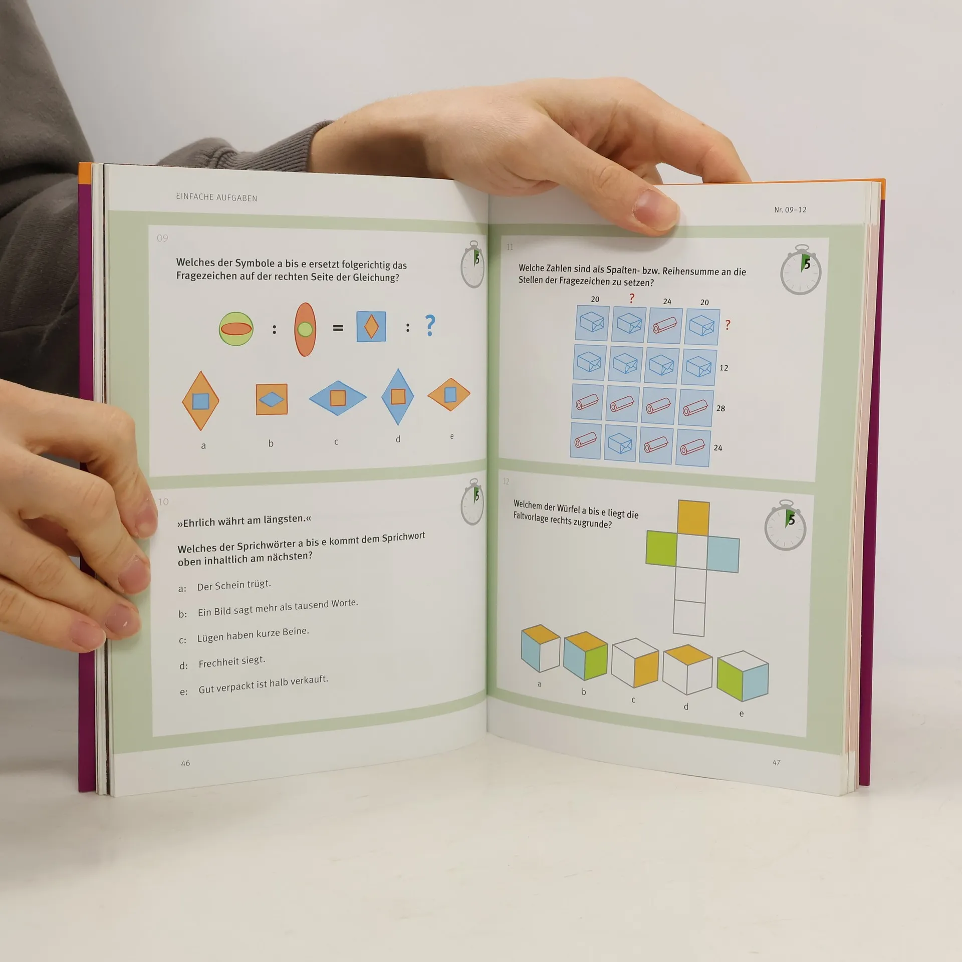 Schlau sein wie ein Fuchs - wer möchte das nicht? Keiner muss sich mit dem zufrieden geben, was er von seinen Eltern mitbekommen hat. Die fluide Intelligenz - also das, was man gemeinhin als Auffassungsgabe, eigenständiges Denken oder Problemlösekompetenz bezeichnet - ist mitnichten eine unveränderliche Größe. Mit ausgeklügelten Übungen kann auch diese Form der Intelligenz trainiert und gesteigert werden. Und genau das versprechen die Aufgaben im Buch und auf der CD-Rom. Nach einem kurzen Einleitungsteil geht es ans Eingemachte. Die Übungsaufgaben sind entsprechend ihrer Komplexität und Schwierigkeit zu Aufgabenblöcken zusammengefasst. So kann der Leser Schritt für Schritt seine Lösekompetenz steigern. Dank des Abschlusstests lässt sich der eigene Fortschritt beobachten und messbar machen. Extra: Die CD-Rom vergrößert die Anzahl der Übungen zusätzlich. Durch den Faktor Zeitbegrenzung kann der Schwierigkeitsgrad noch gesteigert werden.