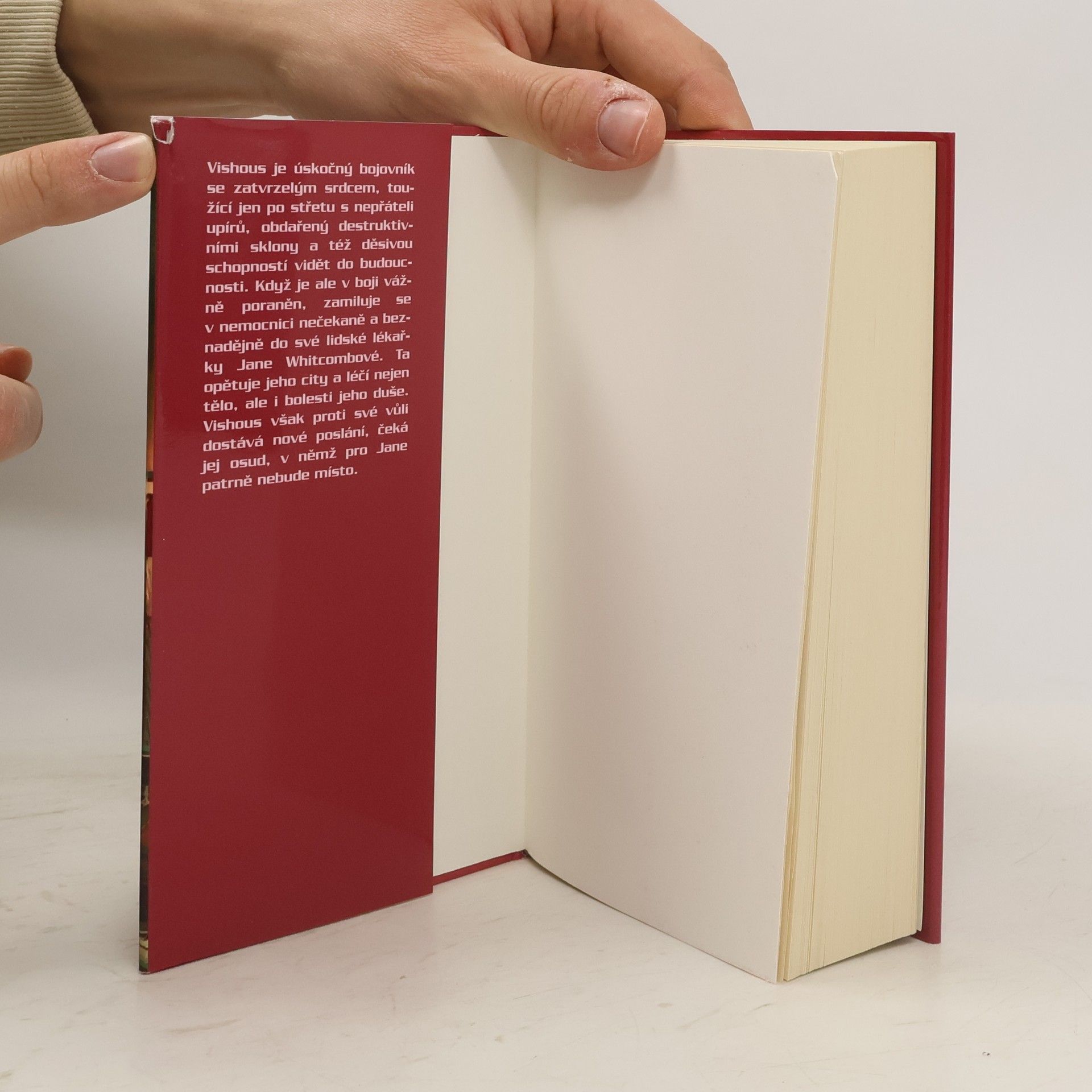 Vishous je úskočný bojovník se zatvrzelým srdcem toužící jen po střetu s nepřáteli upírů, obdařený destruktivními sklony a též děsivou schopností vidět do budoucnosti. Když je ale v boji vážně poraněn, zamiluje se v nemocnici nečekaně a beznadějně do své lidské lékařky, doktorky Jane Whitcombové. Ta opětuje jeho city a léčí nejen jeho tělo, ale i bolesti jeho duše. Vishous však proti své vůli dostává nové poslání, čeká jej osud, v němž pro Jane patrně nebude místo.