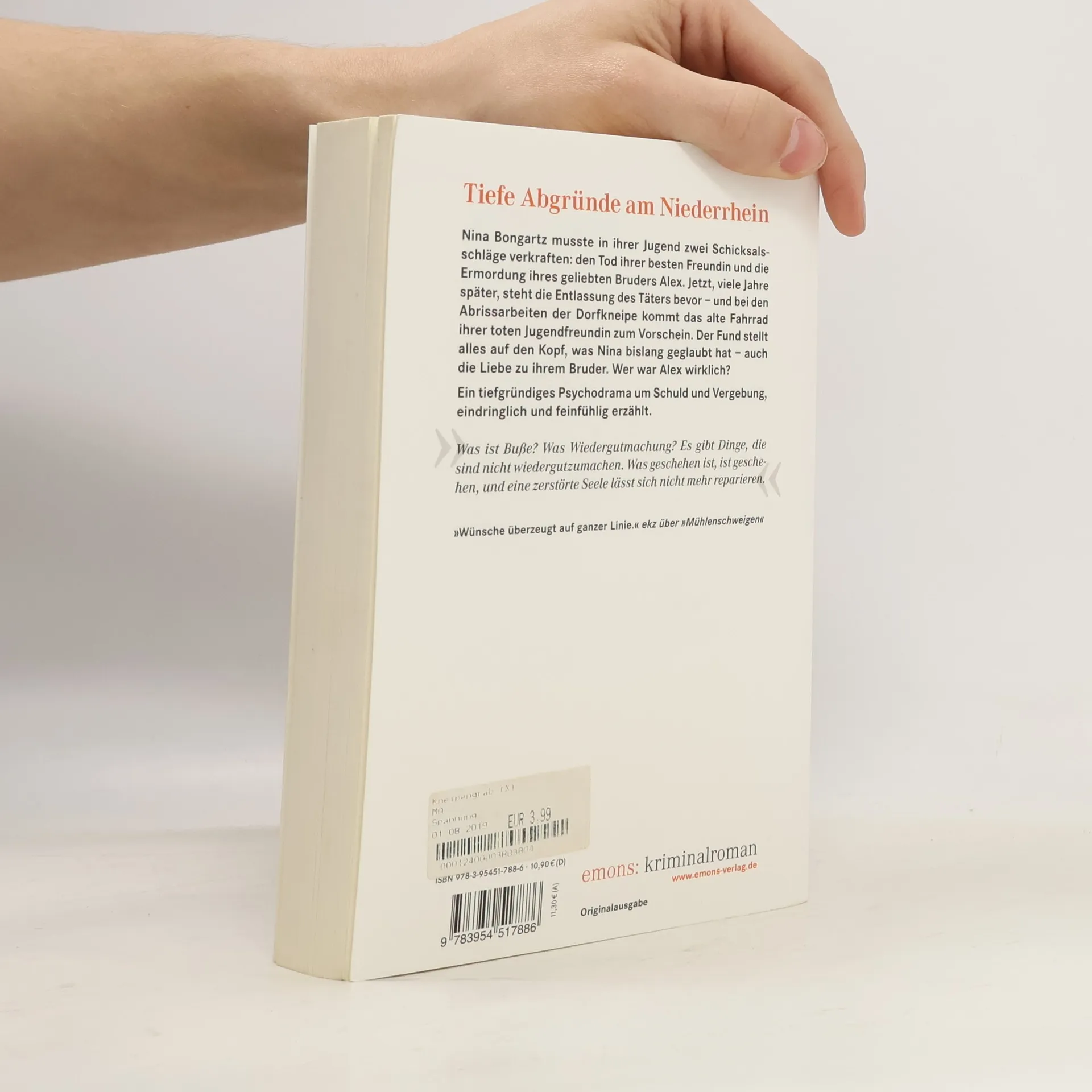 Nina Bongartz musste in ihrer Jugend zwei Schicksalsschläge verkraften: den Tod ihrer besten Freundin und die Ermordung ihres geliebten Bruders Alex. Jetzt, viele Jahre später, steht die Entlassung des Täters bevor – und bei den Abrissarbeiten der Dorfkneipe kommt das alte Fahrrad ihrer toten Jugendfreundin zum Vorschein. Der und stellt alles auf den Kopf, was Nina bislang geglaubt hat – auch die Liebe zu ihrem Bruder. Wer war Alex wirklich? Ein tiefgründiges Psychodrama um Schuld und Vergebung, eindringlich und feinfühlig erzählt.