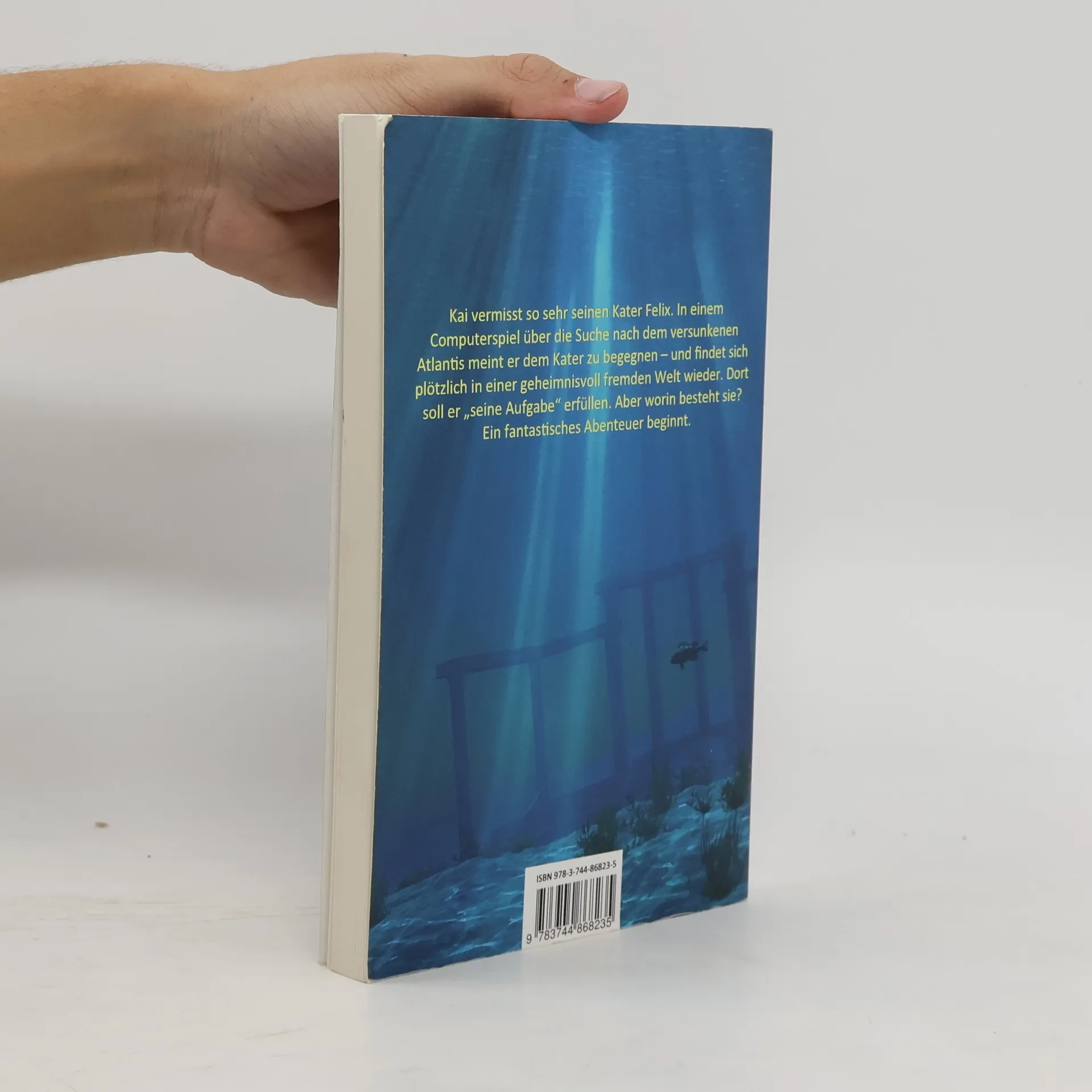 Kai vermisst so sehr seinen Kater Felix. In einem Computerspiel über die Suche nach dem versunkenen Atlantis meint er dem Kater zu begegnen - und findet sich plötzlich in einer geheimnisvoll fremden Welt wieder. Dort soll er "seine Aufgabe" erfüllen. Aber worin besteht sie? Ein fantastisches Abenteuer beginnt. Für Kinder und Jugendliche ab 10 Jahren.
