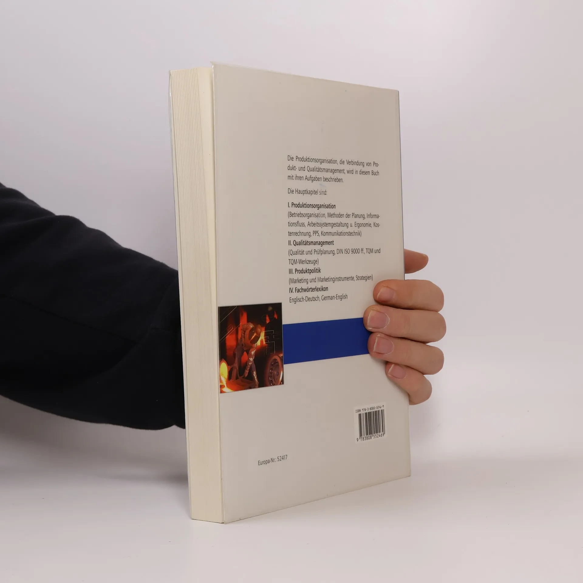 Organisation und Management der Produktion, Qualitätsmanagement, Arbeitsgestaltung und Produktpolitik sind methodisch aufbereitet und an Hand eines Leitbeispiels im Zusammenhang dargestellt. Das Buch bietet umfassend den Lehr und Lernstoff zur Produktionsorganisation und unterstützt das Verstehen mit vielen praxisbezogenen Beispielen und Übungen. So wird auch projektorientiertes Lernen erfahrungsgeleitet unterstützt. Neu sind in der 6. Auflage eine Reihe von Erweiterungen, u. a. die Darstellung des neuen Vergütungssystems ERA.